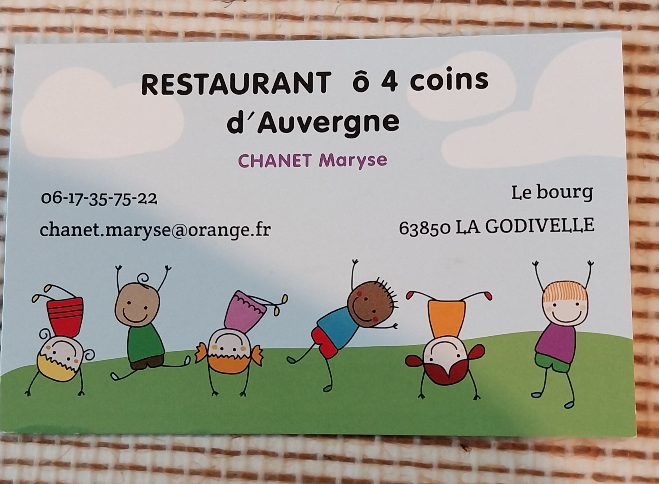 Voici toutes les informations sur le Restaurant Ô 4 Coins d'Auvergne qui ce trouve au Le Bourg, 63850 La Godivelle (63). Sur cette fiche vous trouverez les photos, l'adresse, les horaires d'ouverture, le numero de téléphone et les avis clients.Vous pouvez églement rédiger un avis si vous le souhaitez en bas de page.