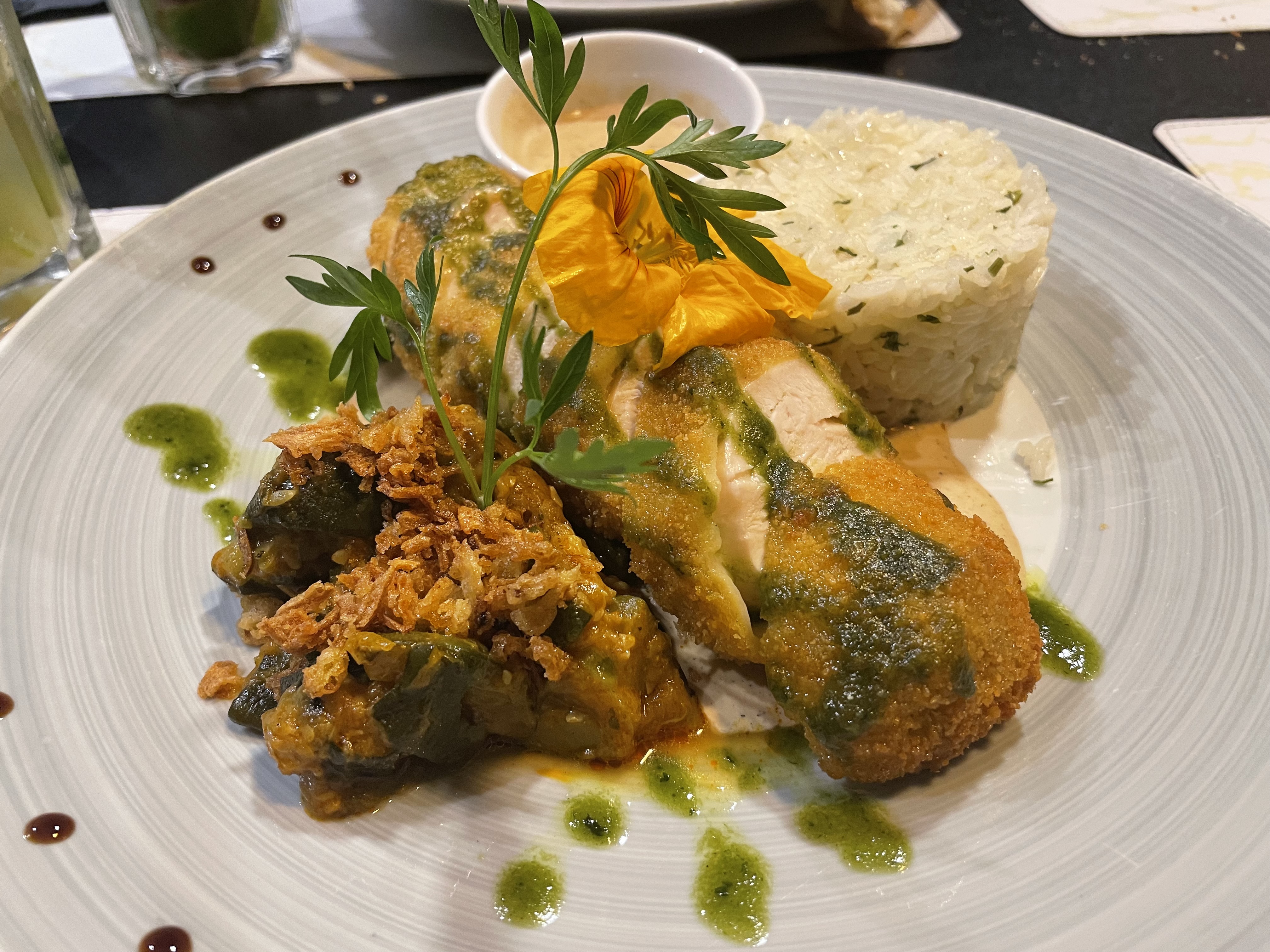 Roulade de poulet farci pleins de saveur c’était excellent. Personnel agréable et accueillant !! Merci !!
