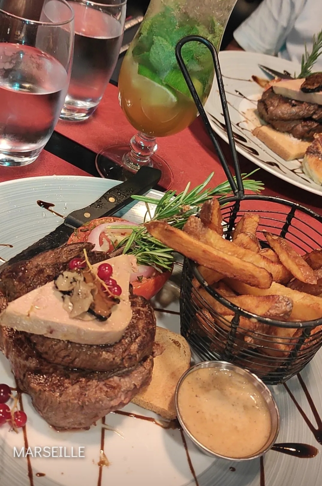 Nous qui voulions manger une bonne viande, nous avons été déçus. La cuisson de la viande pas maîtrisée Les frites mal cuites Les sauces (il n y a rien, une mini coupelle) et si vous en voulez plus il faut rajouter 2 euros ! Les prix sont très élevés niveau qualité et emplacement, beaucoup plus cher que si on était situé sur le vieux port par exemple.