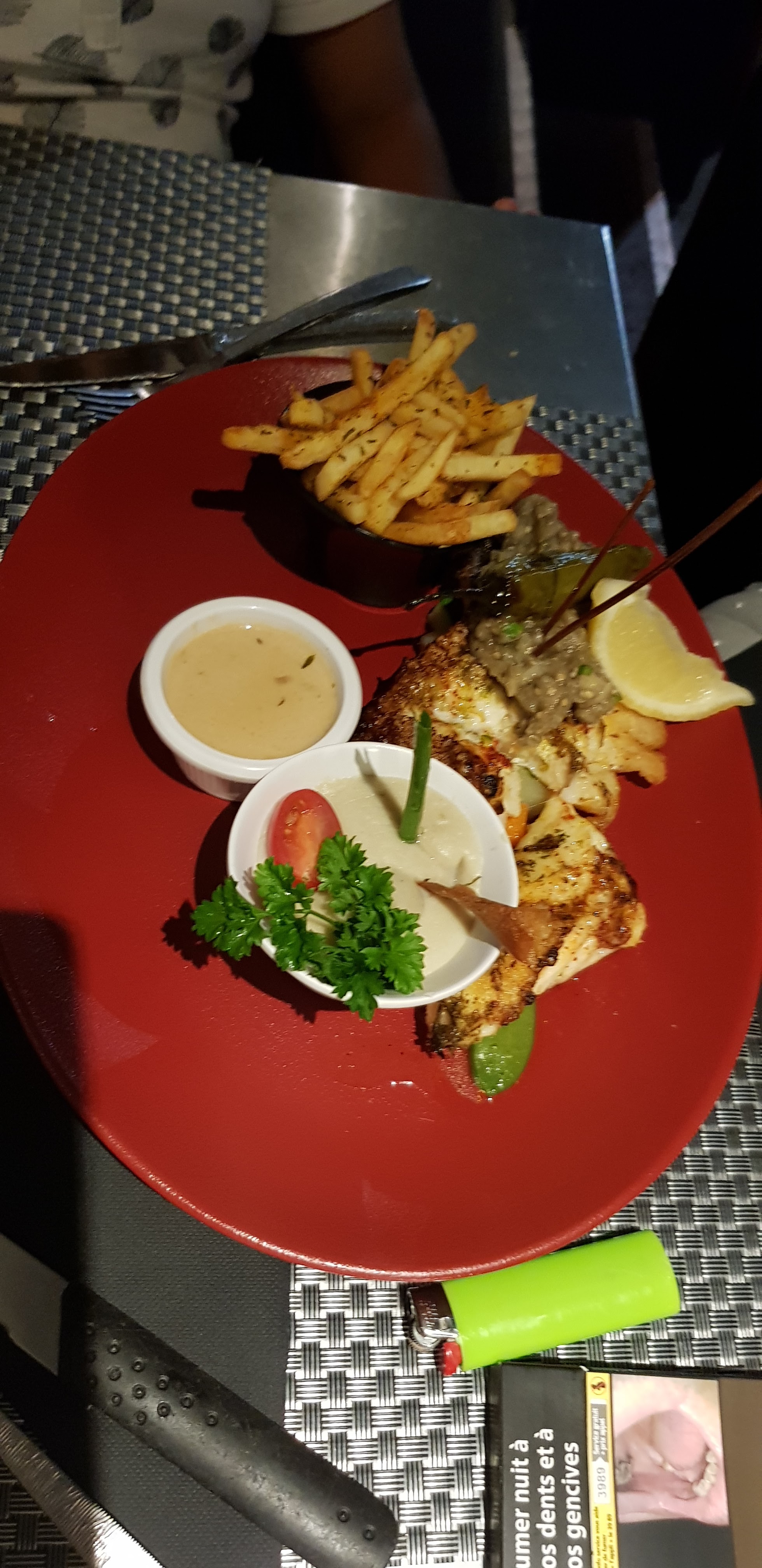 Nous avons été servie par Evelyne qui a fait preuve d’un professionnalisme exemplaire. La nourriture était excellente, les saveurs incroyable merci aux cuisiniers pour leur travail. Pas facile de trouver un restaurant aussi incroyable sur l’île, je recommande vivement!!!!