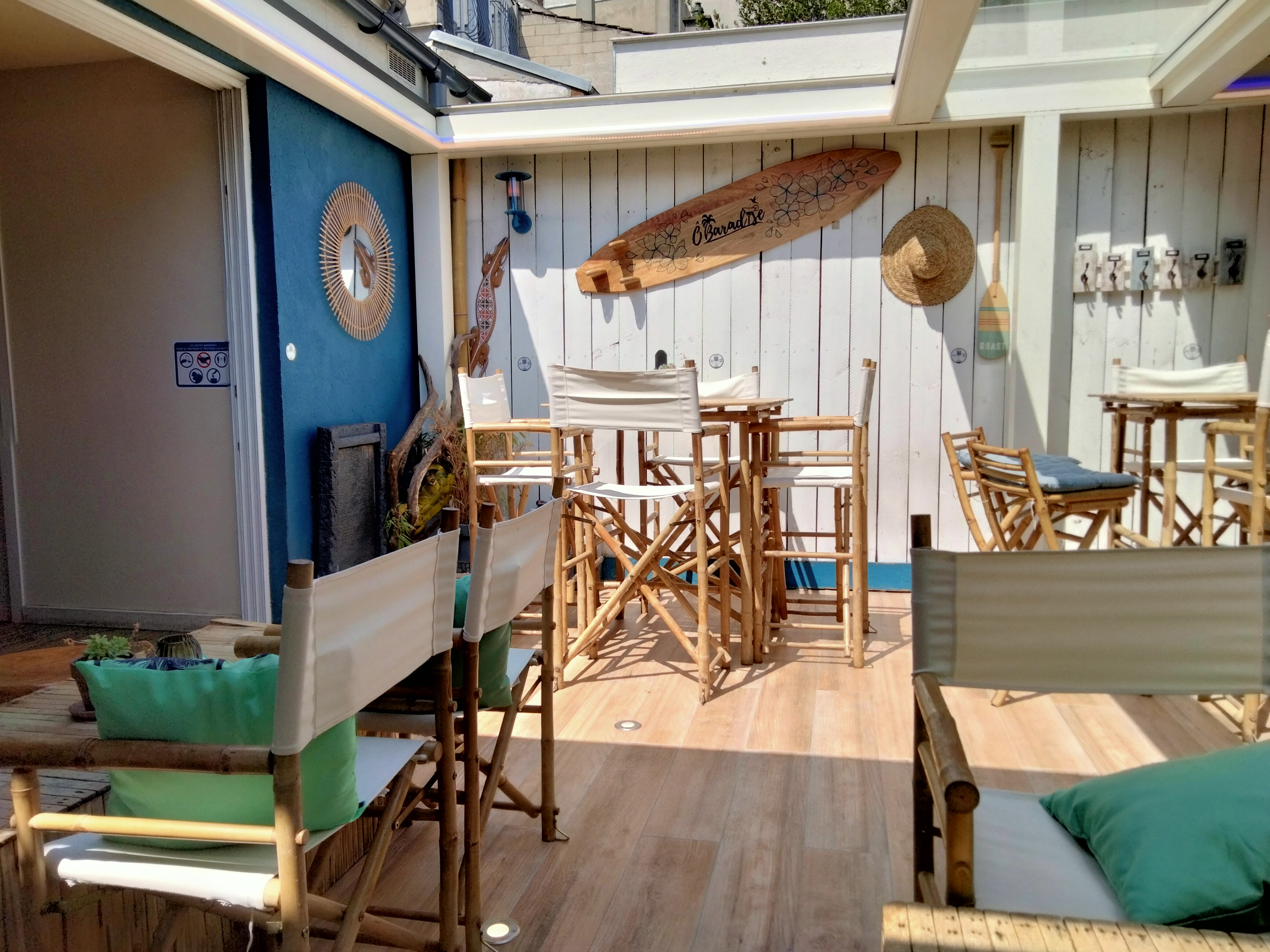 Excellent bar ! Le concept est très original on se retrouve vraiment plonger dans l'univers des vacances au bord de la plage, c'est super d'avoir une mise en forme aussi réussie ! La carte est dématérialisée, c'est facile de choisir ses consommations, par contre, je ne sais pas si quelque chose est pensé pour les personnes sans téléphone. Surpris également du prix de certaines consommation notamment par rapport à la nourriture où le prix est élevé pour la quantité proposée.