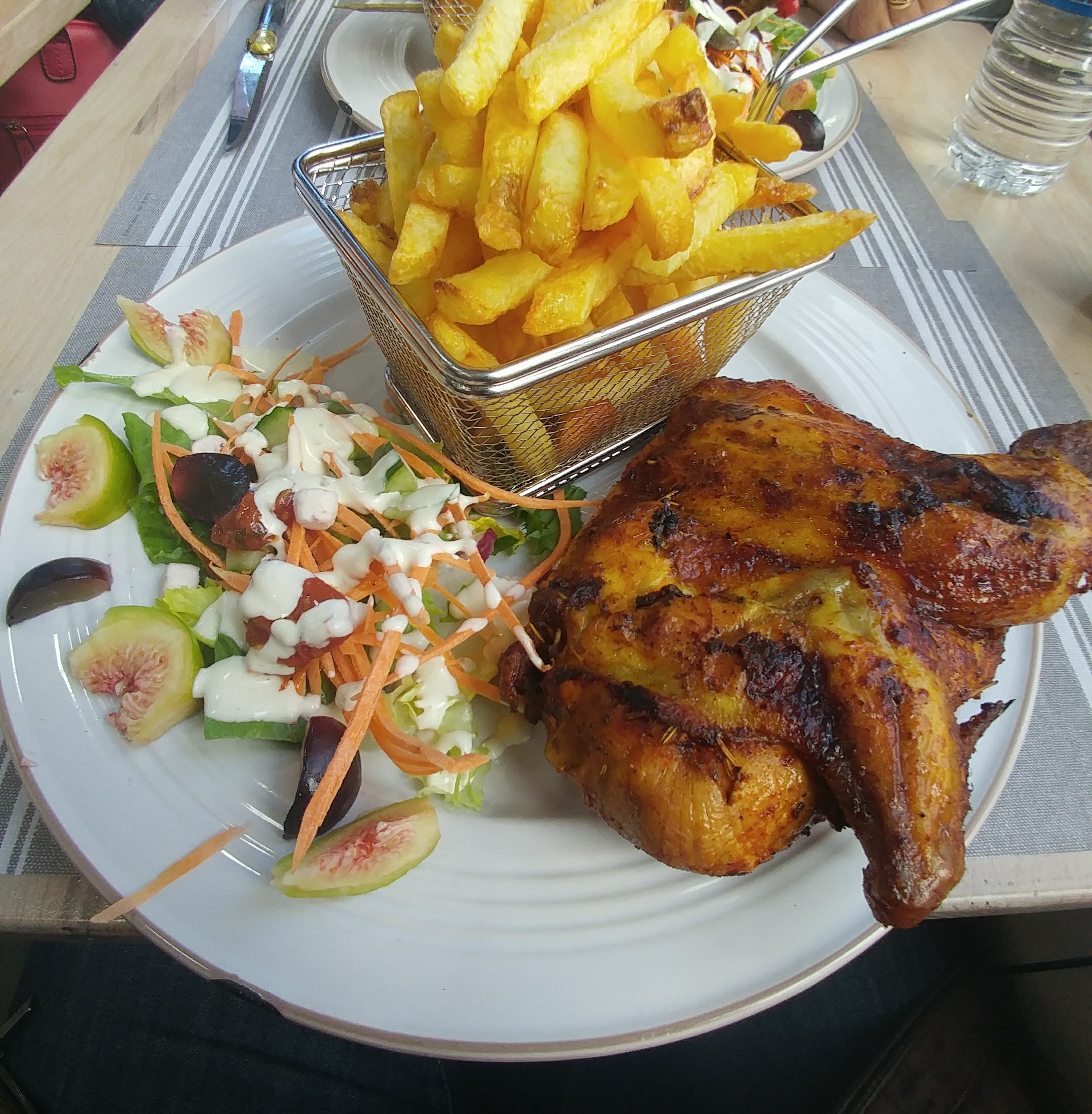 Commande 1/2 poulet avec frite pour un prix dérisoire, le poulet était excellent et très très bien assaisonné ! Et que dire des frites, divines, j’y retournerai sans hésiter