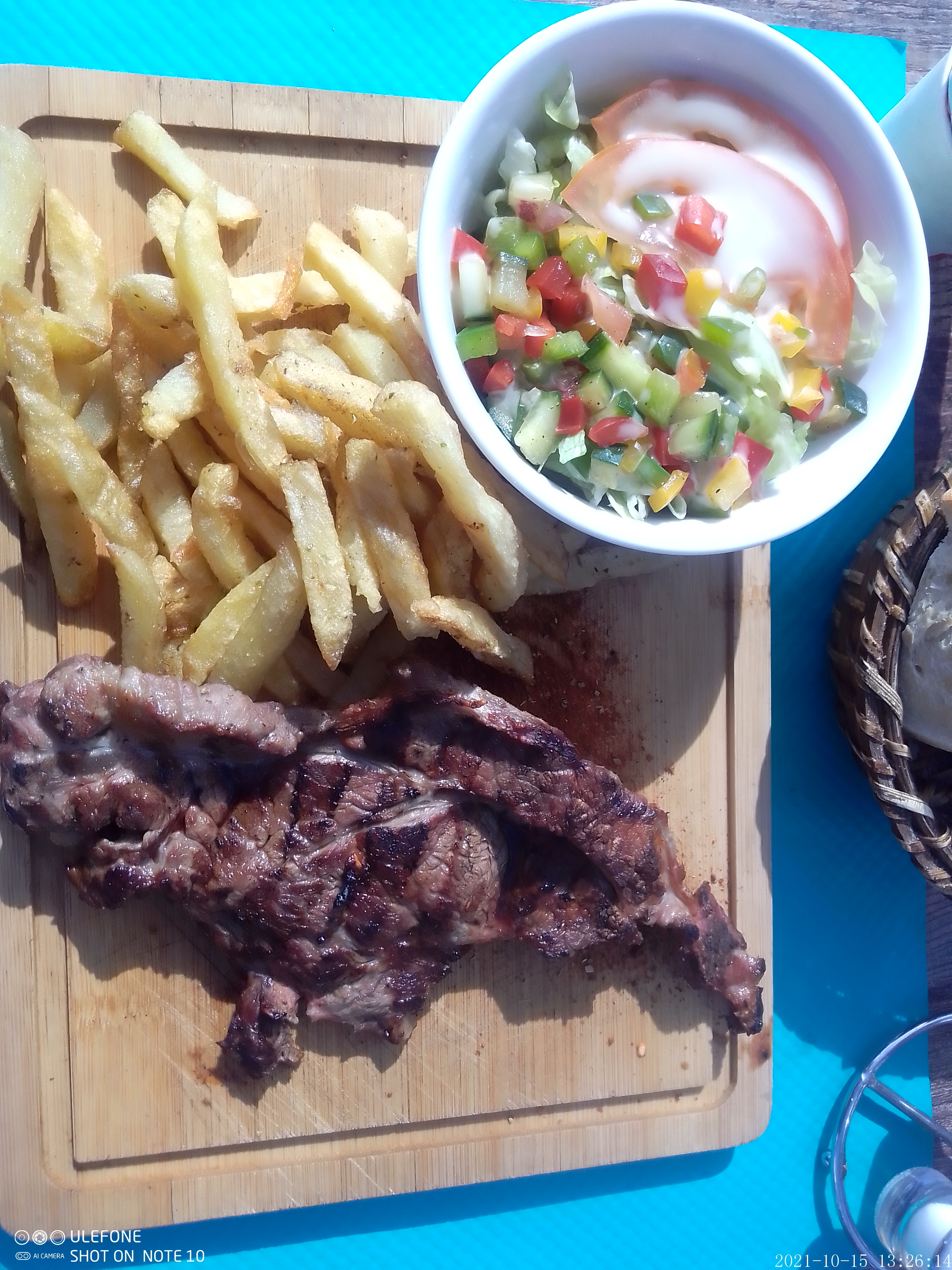 Repas un midi 5 personnes, assiette de viande marinée très bien cuite et bon goût, accompagnée d’une salade et de bonnes frites, bonne présentation sur planche, excellent pour le prix. Super accueil très aimable service rapide.