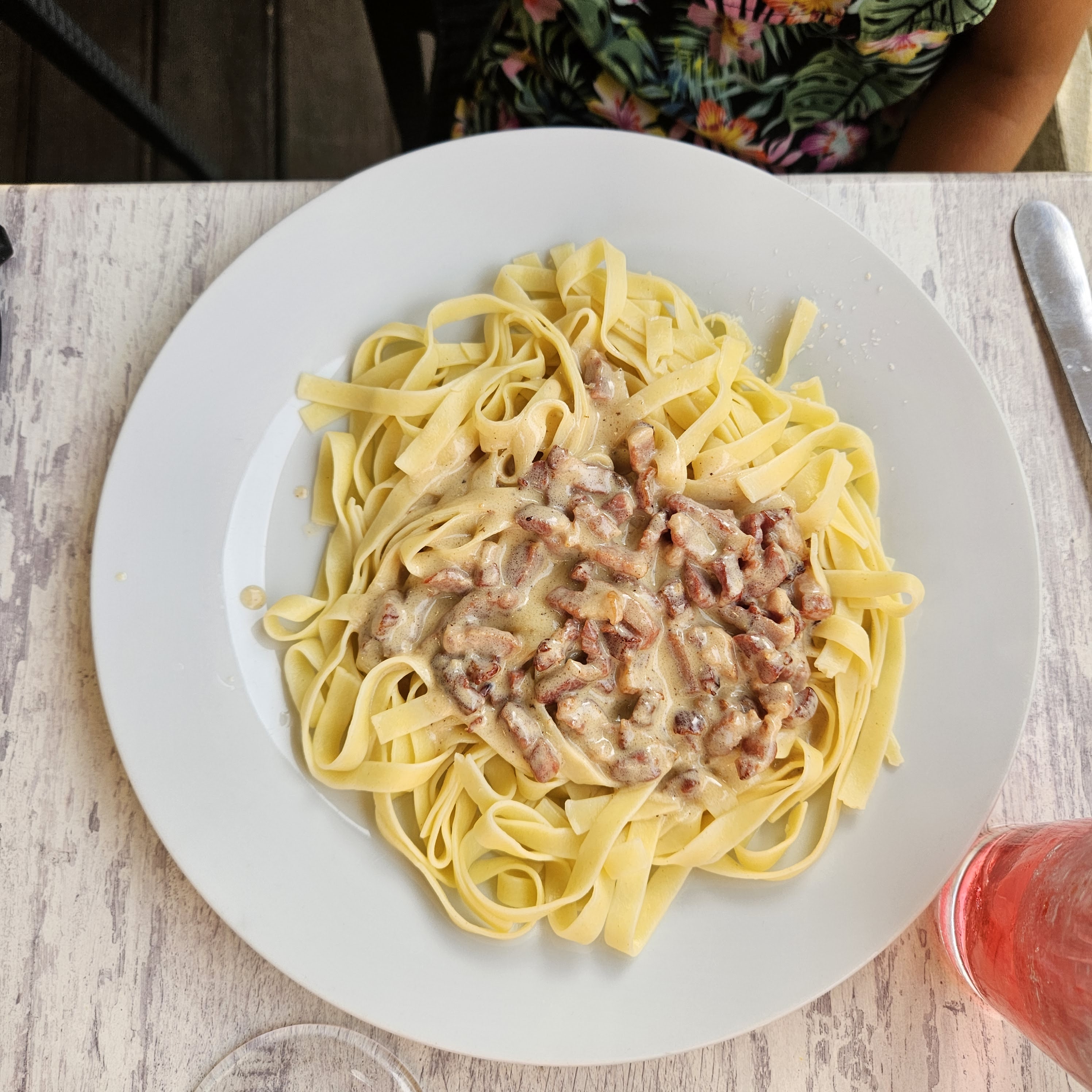 Délicieuse carbonnara/pizza et personnel sympathique. Bon prix pour un savoureux plat du jour