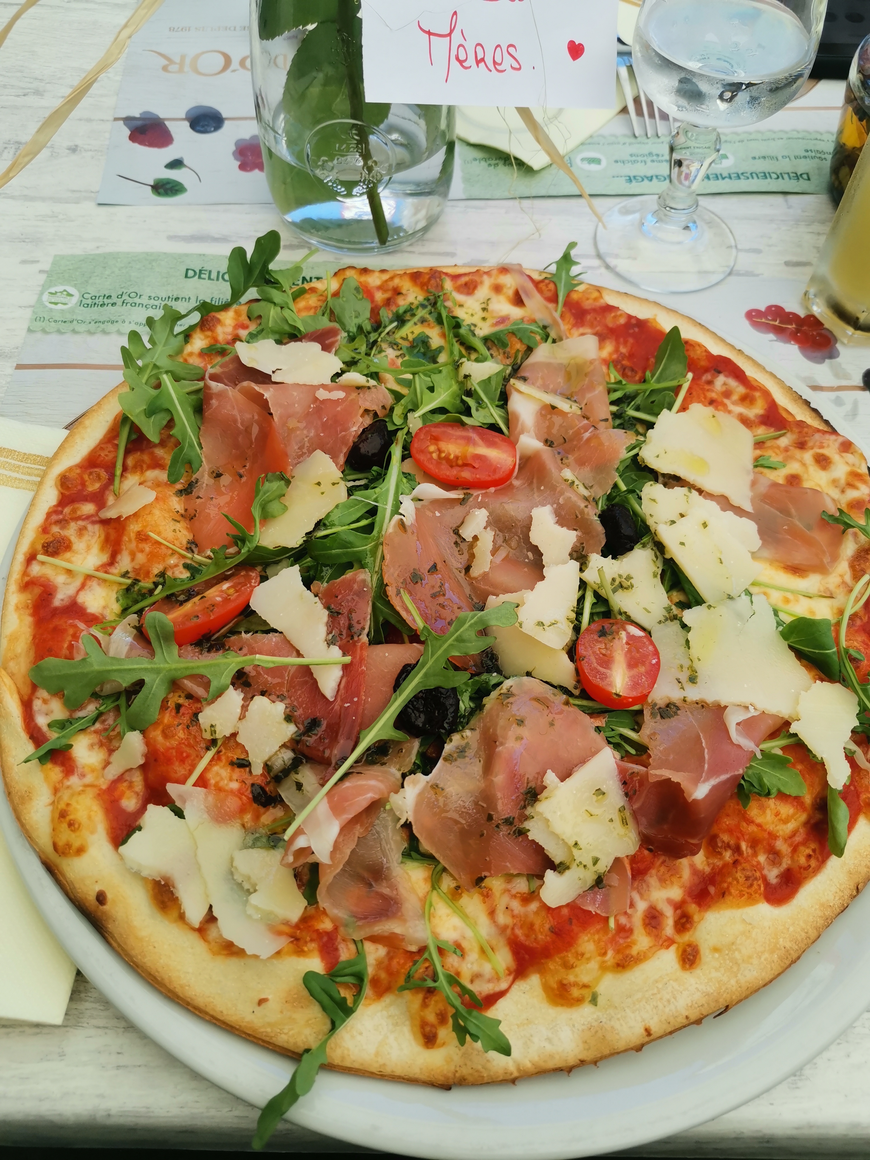 Nous étions ici pour la première fois aujourd'hui. Comme plat nous avons choisi « Formule Gourmande » et Pizza Hawai. Les deux plats étaient excellents et généreusement préparés, tout simplement parfaits. Nos chiens ont également reçu un bol d'eau. Nous y resterons encore quelques jours, nous reviendrons !!!