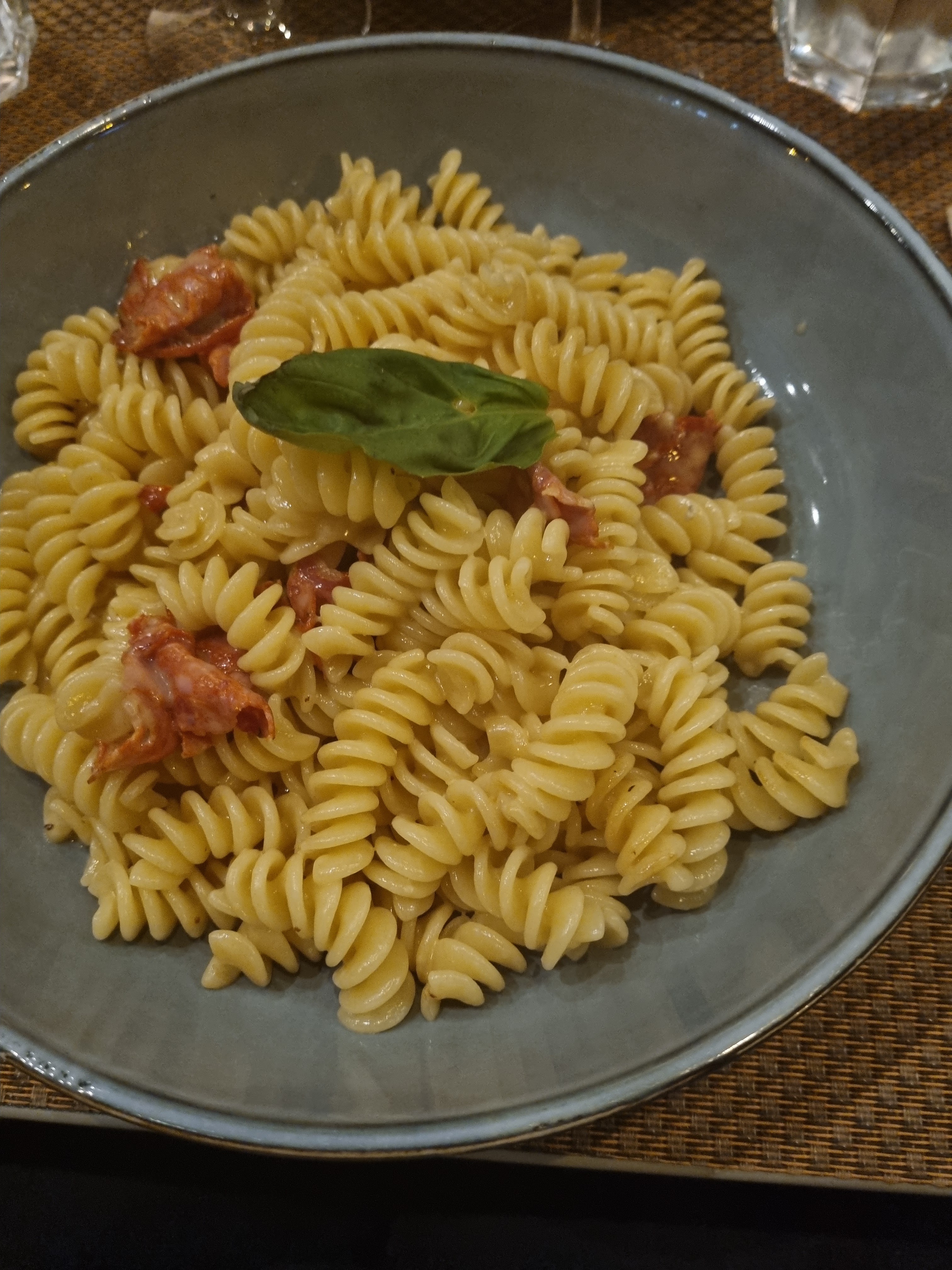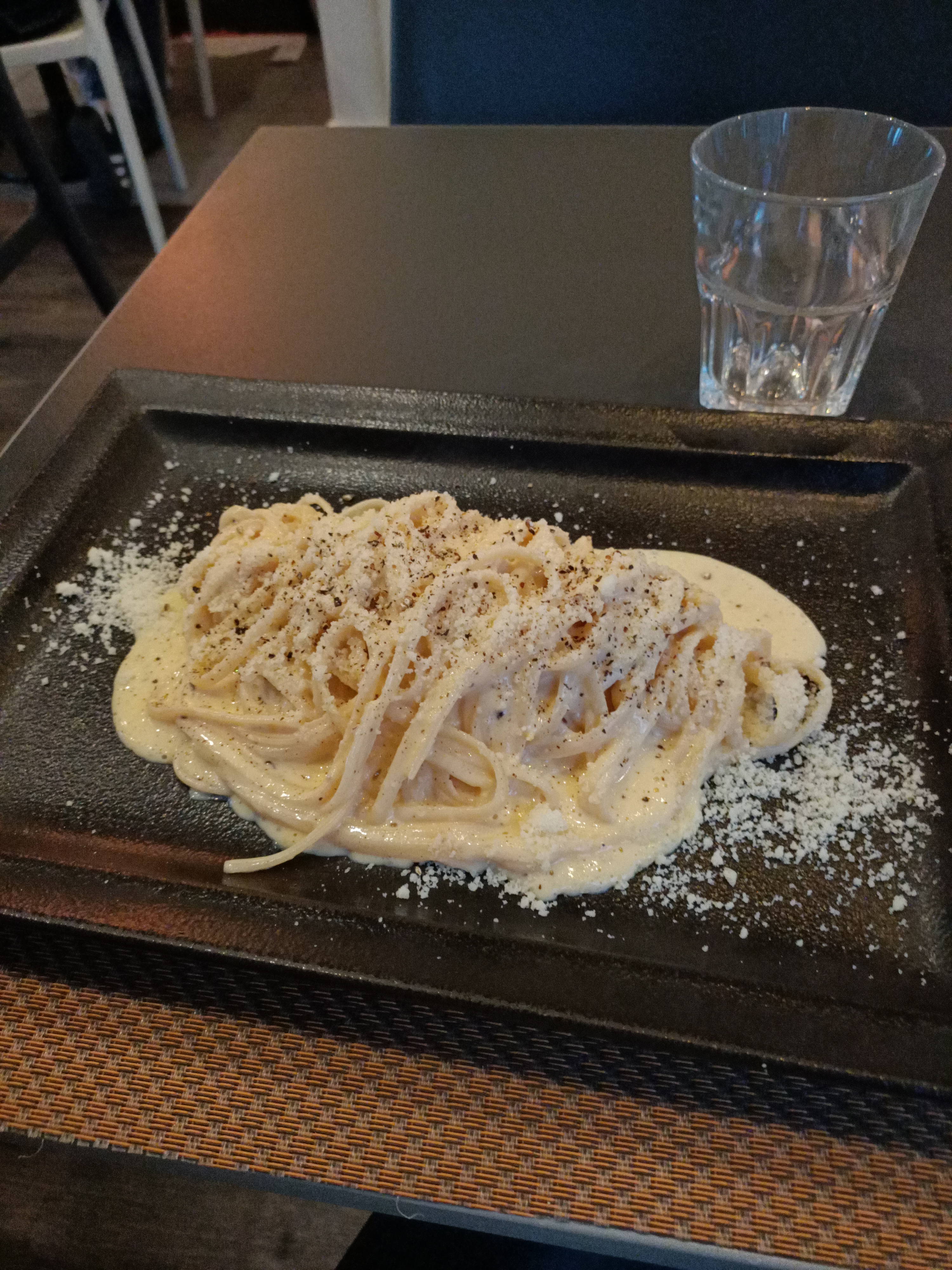 De délicieuses pâtes à la carbonara, un excellent prosecco le personnel est souriant et le patron chaleureux et agréable saura vous mettre à l’aise. Je recommande vivement pour qui veut une escapade des papilles en Italie !