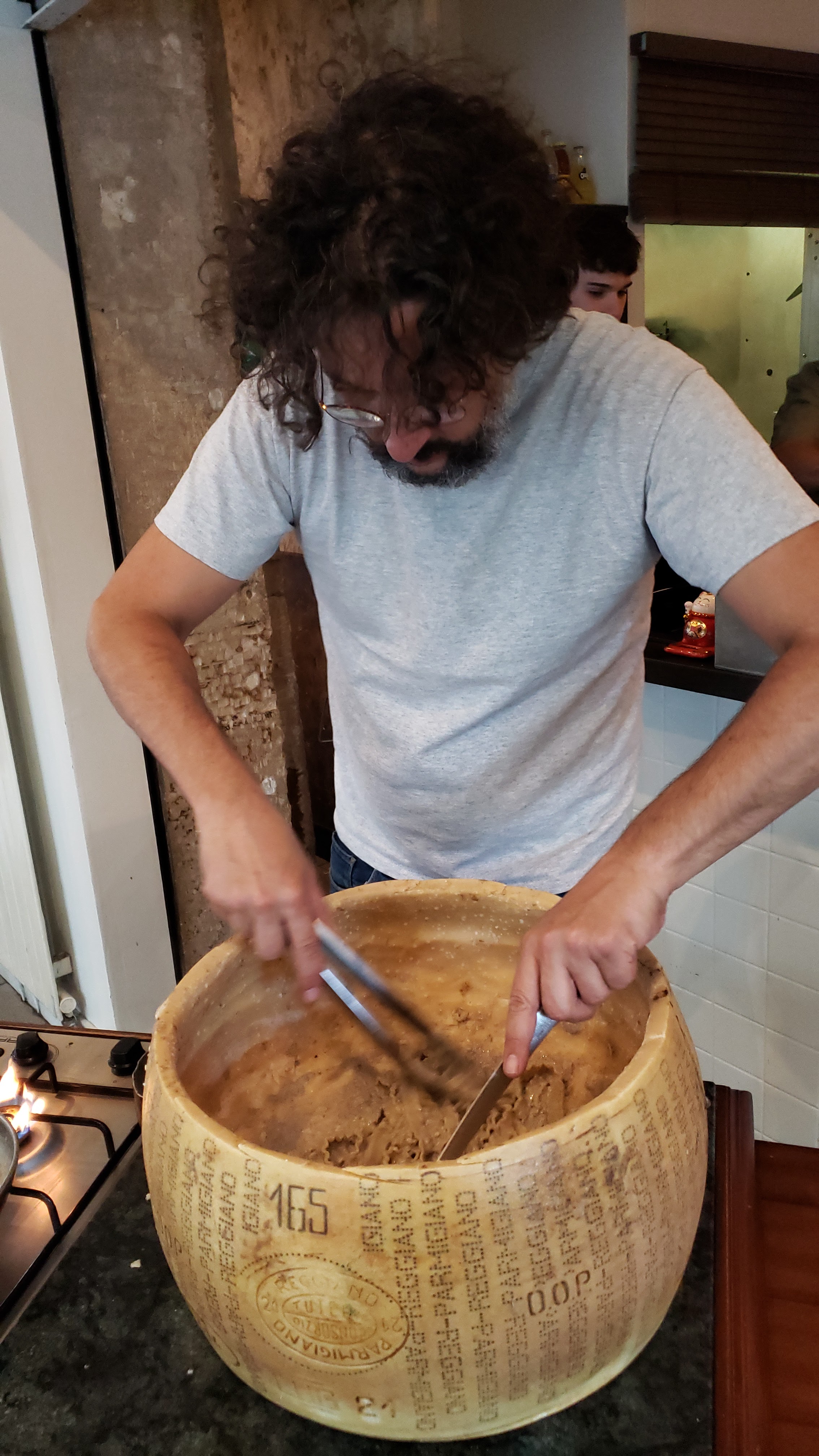 EXCELLENT! - la spécialité, les pâtes dans la meule de parmesan, sont délicieuses - le patron est drôle, souriant et accueillant. On se sent vraiment les bienvenus - l'ambiance est chaleureuse