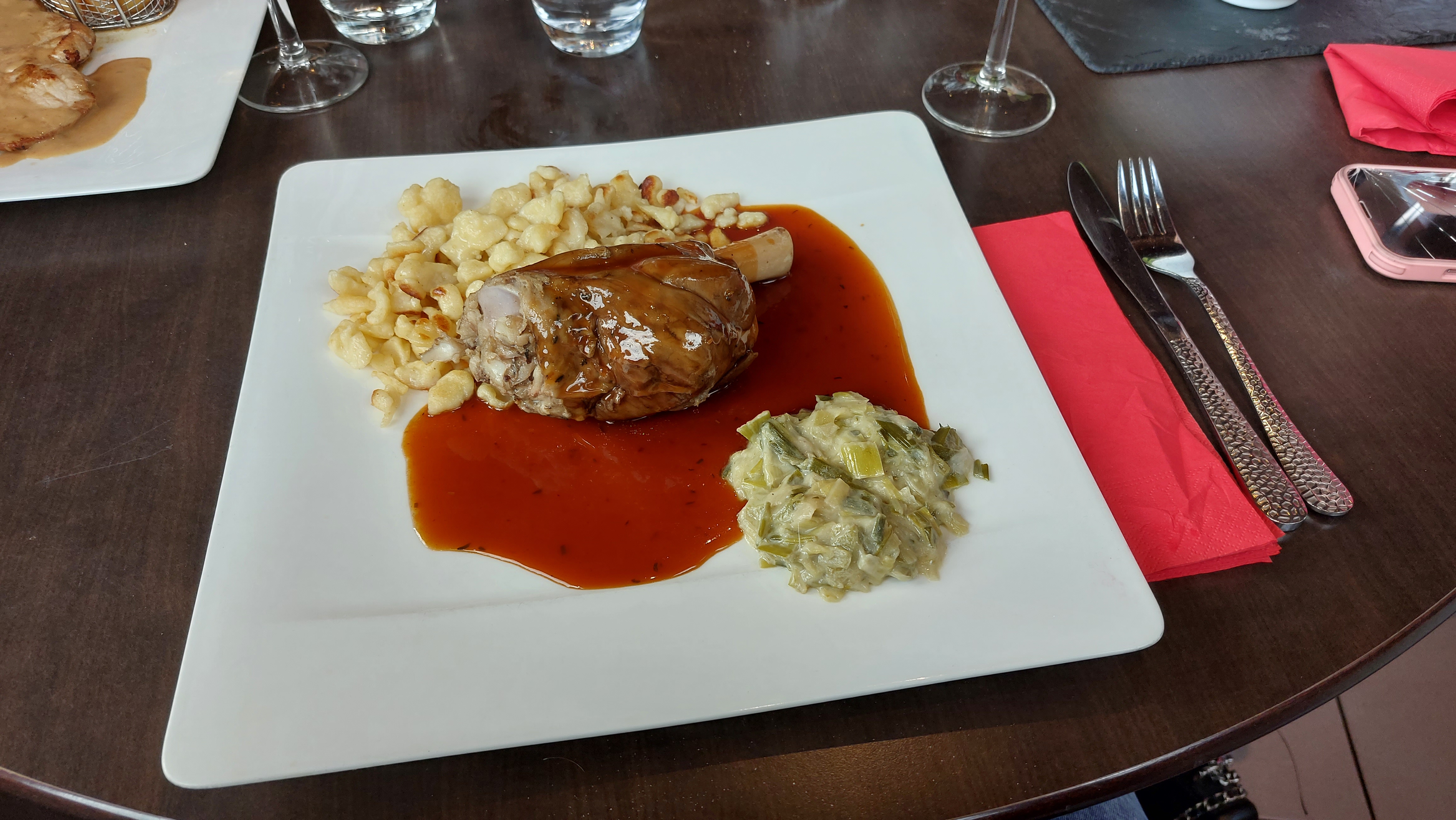 Choucroute et les autres plats bien copieux. La poire était également bien bonne 🤭 Le personnel est super sympa et a bien plaisanté avec notre tablée. Si on revient dans la région, c'est sûr qu'on viendra dîner. Ne changez rien et gardez votre bonne humeur, ca fait tellement de bien.