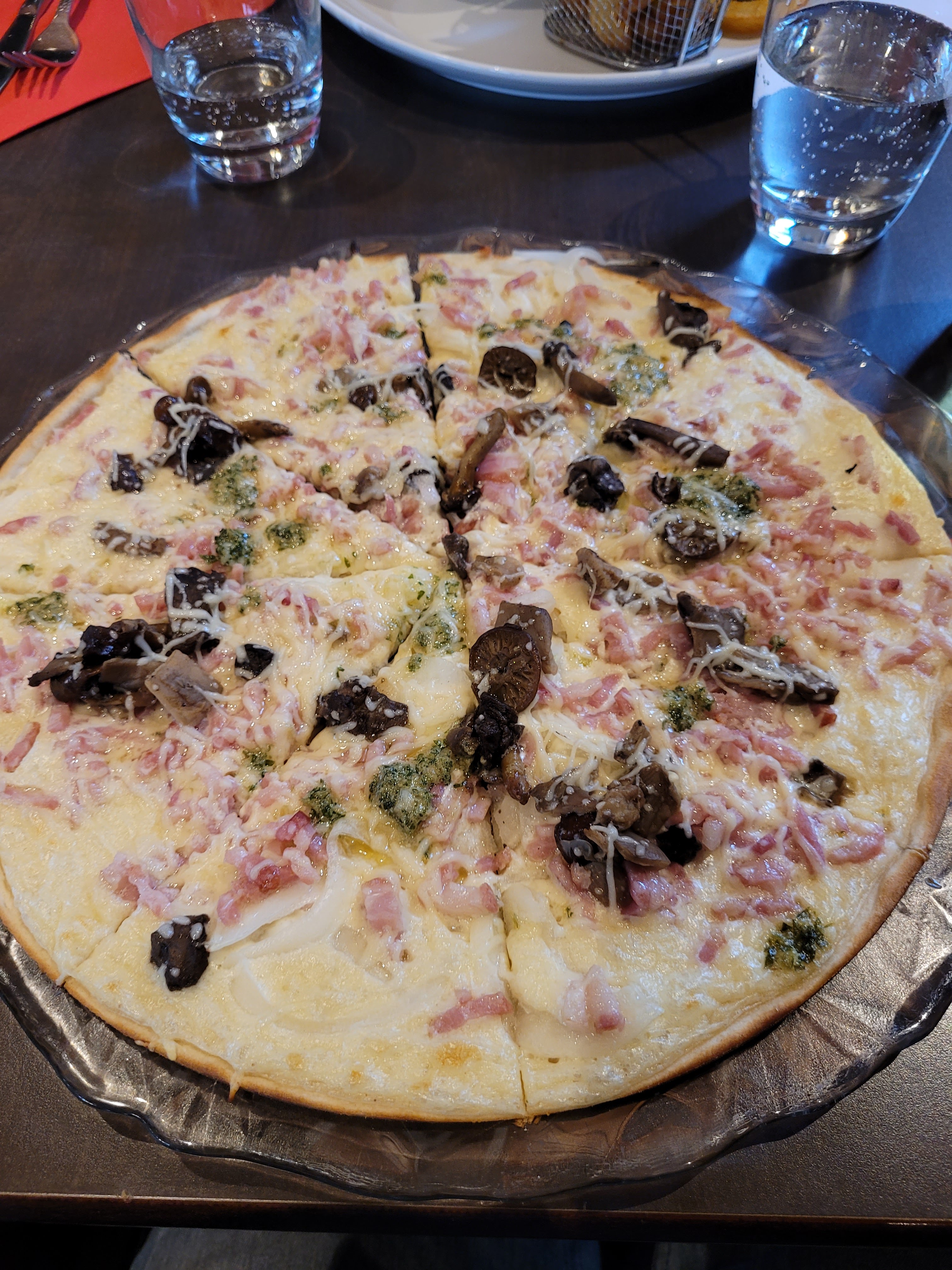 Une des meilleures tartes flambées que j'ai mangée, le menu enfant est très chouette avec une petite entrée bien présentée. Service parfait, aimable et souriant. Nous reviendrons!