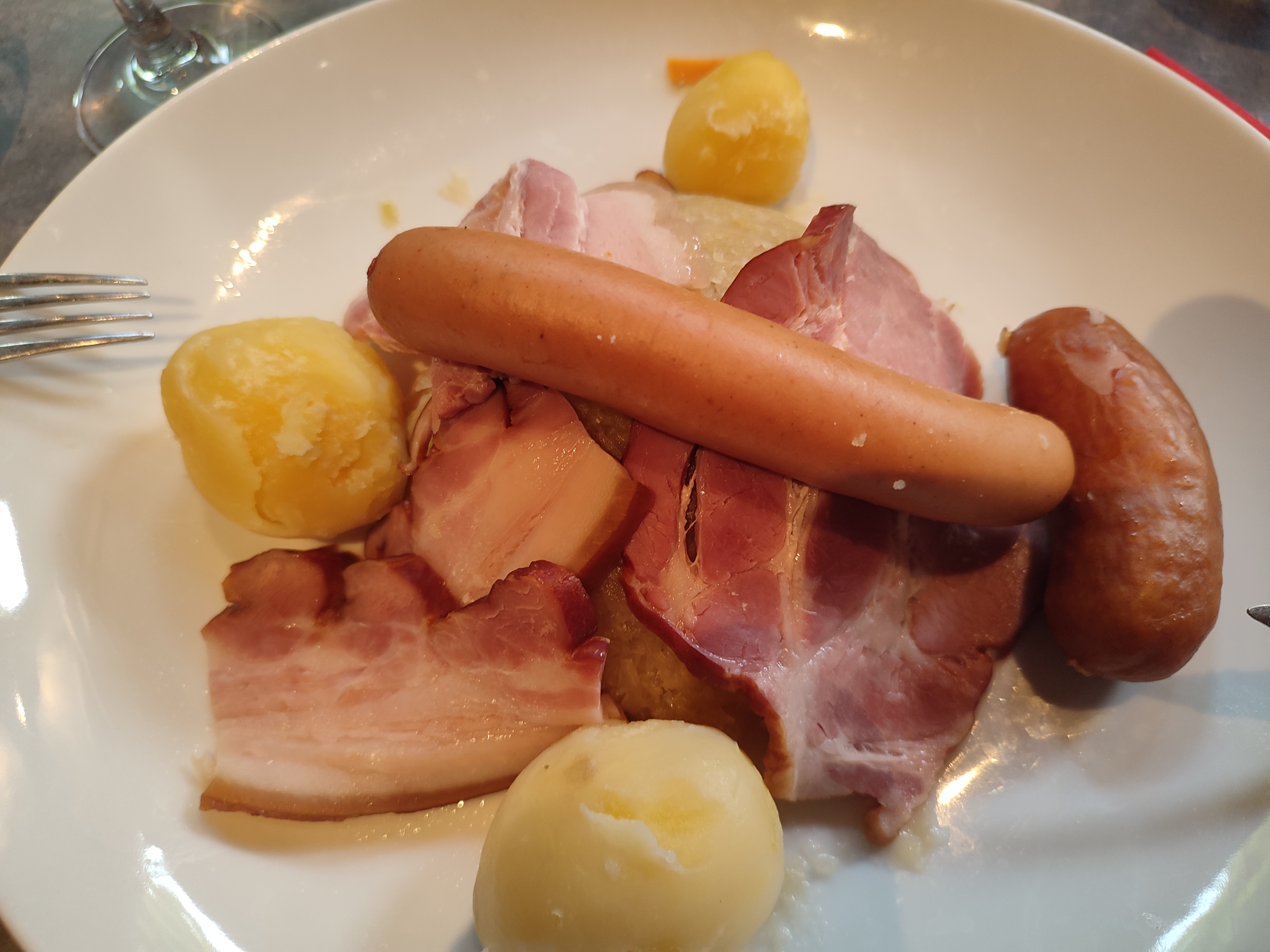 Accueil sympa. Par contre pour une choucroute faite maison, il y a à redire. Pomme de terre sous vide, saucisse fumée sûrement cuite dans l'eau, car celle-ci rejetait le surplus d'eau. Et pour conclure, 1 personne malade au bout de 45mn.
