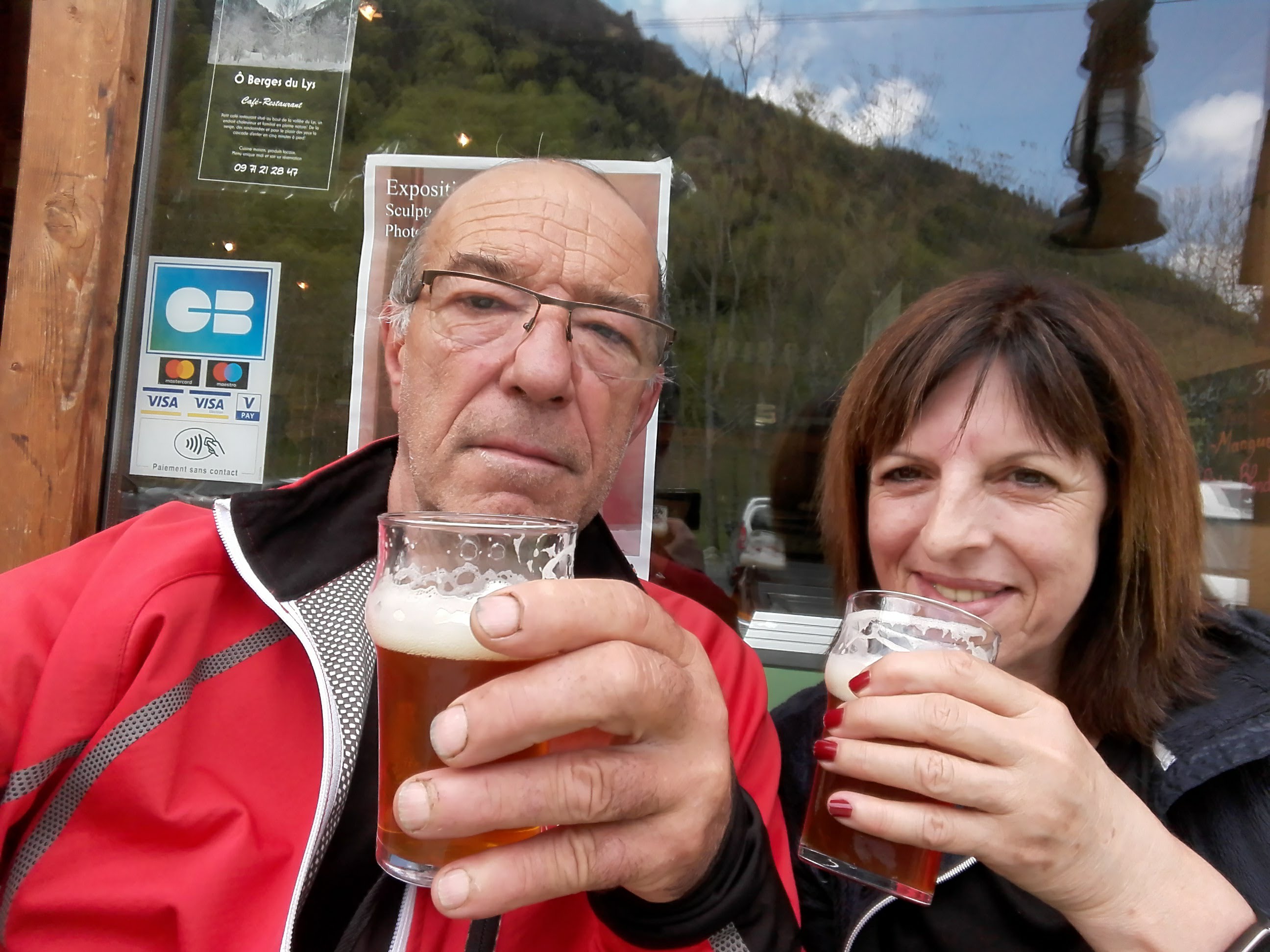 Après une randonnée aller-retour jusqu'au lac vert de 8 heures (pourtant sportif), content de boire une bonne bière et de déguster une crêpe. Mention speciale pour la mentheuse.