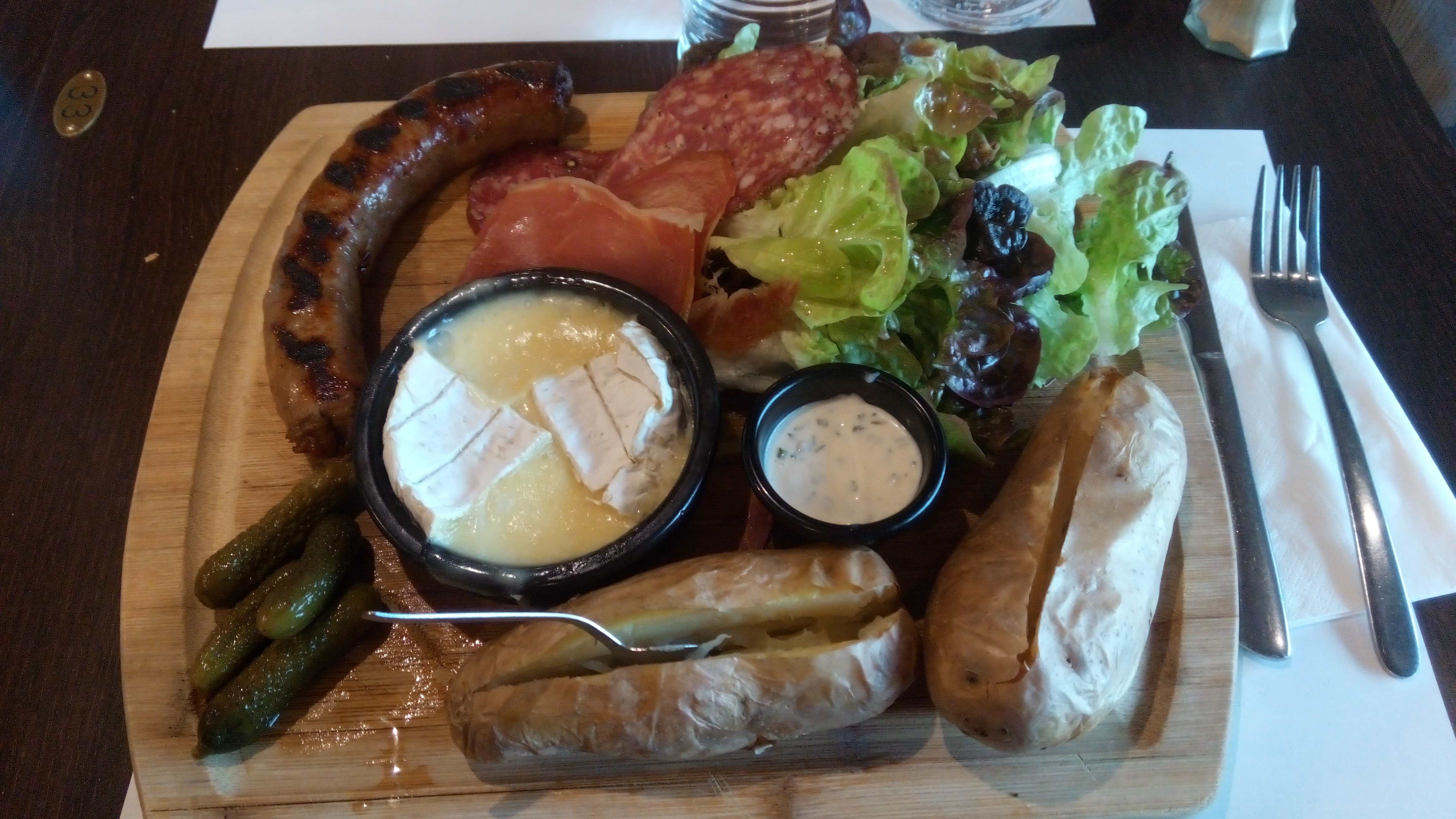 Étant tres pressées nous avons commande des plateaux dites fondue! La serveuse nous a garanti que ca serait rapide: je confirme. Camembert ou saint Marcellin, résultat est le meme: calé! Effectivement copieux et bon! Seul petit point négatif: malgré les nombreux parking c'est toujours compliqué de se garer.