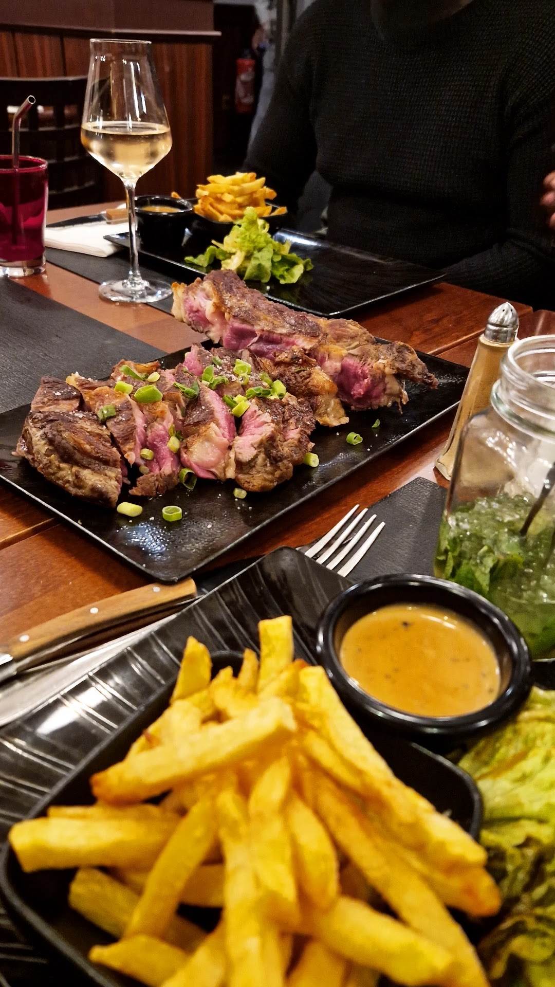 Très bonne expérience ! La salade de gambas en entrée était copieuse et excellente, les plats étaient très bons également. Je recommande la sauce aux échalotes avec la bavette ! Service très agréable.