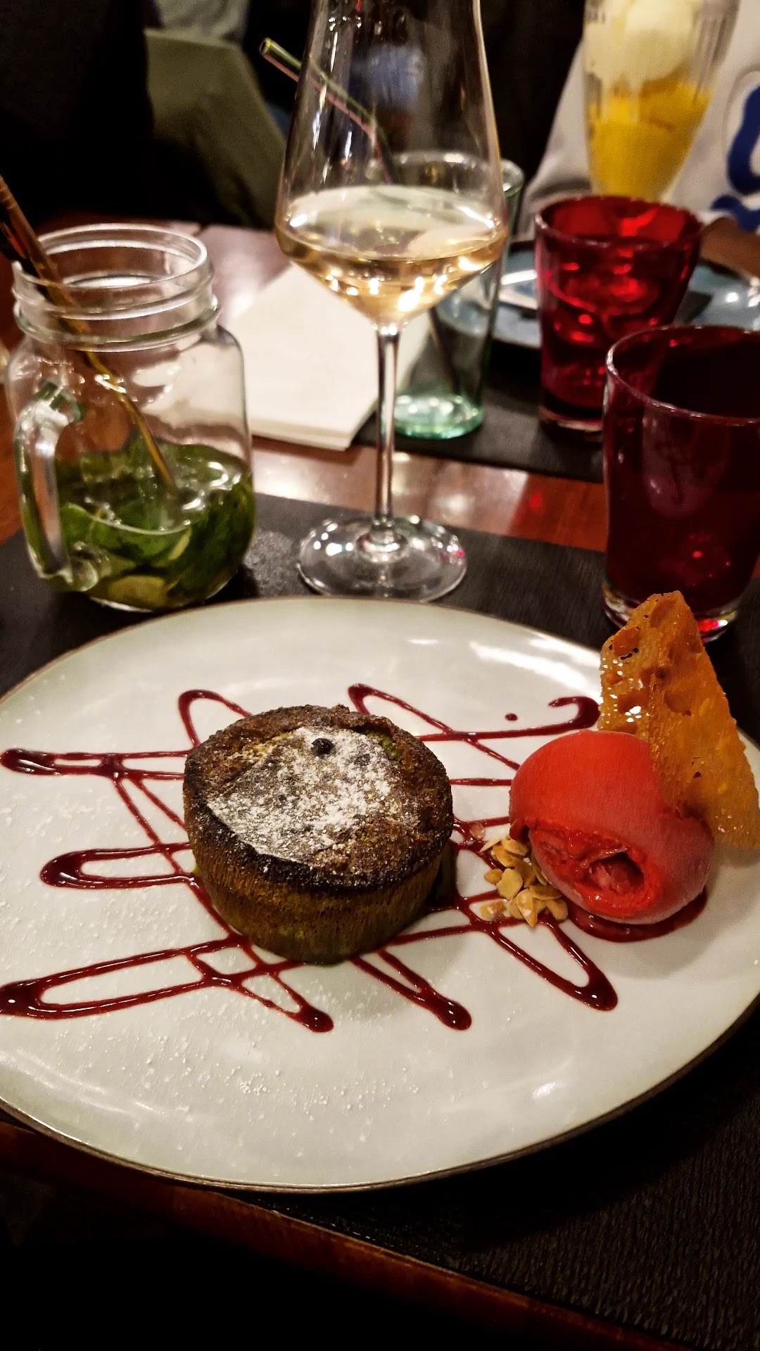 Nous avons un très bon moment, la cuisine est excellente et le service de qualité. Le mi-cuit à la pistache est à tomber ! La carte des cocktails mériterait d'être un peu plus étoffée à mon goût mais sinon je recommande vivement ce restaurant.