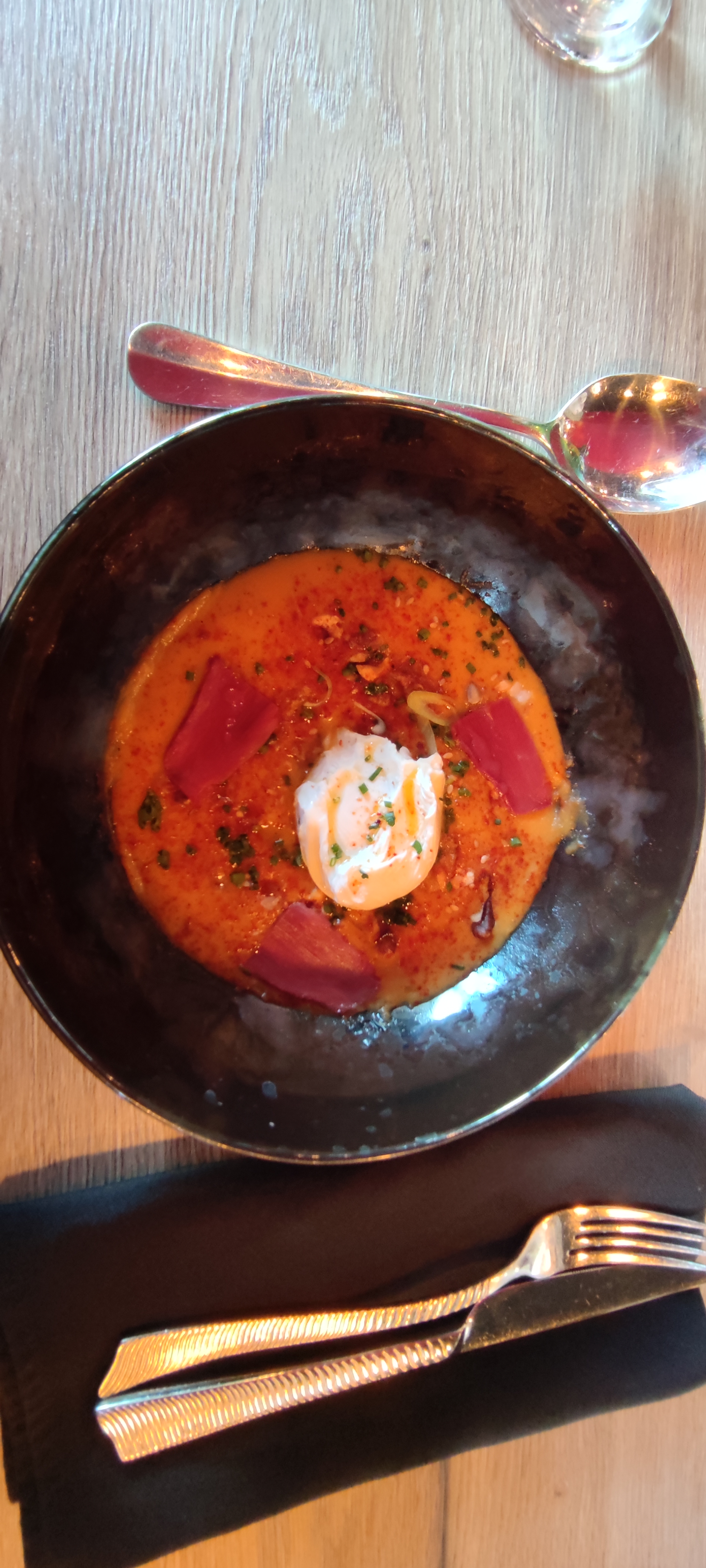 Pour le petit restaurant que c'est, je trouve que la cuisine est très bonne et originale : j'ai mangé un plat avec une sauce ou mousse à base de chorizo. C'est franchement à tester, le rapport qualité / prix est bien là !