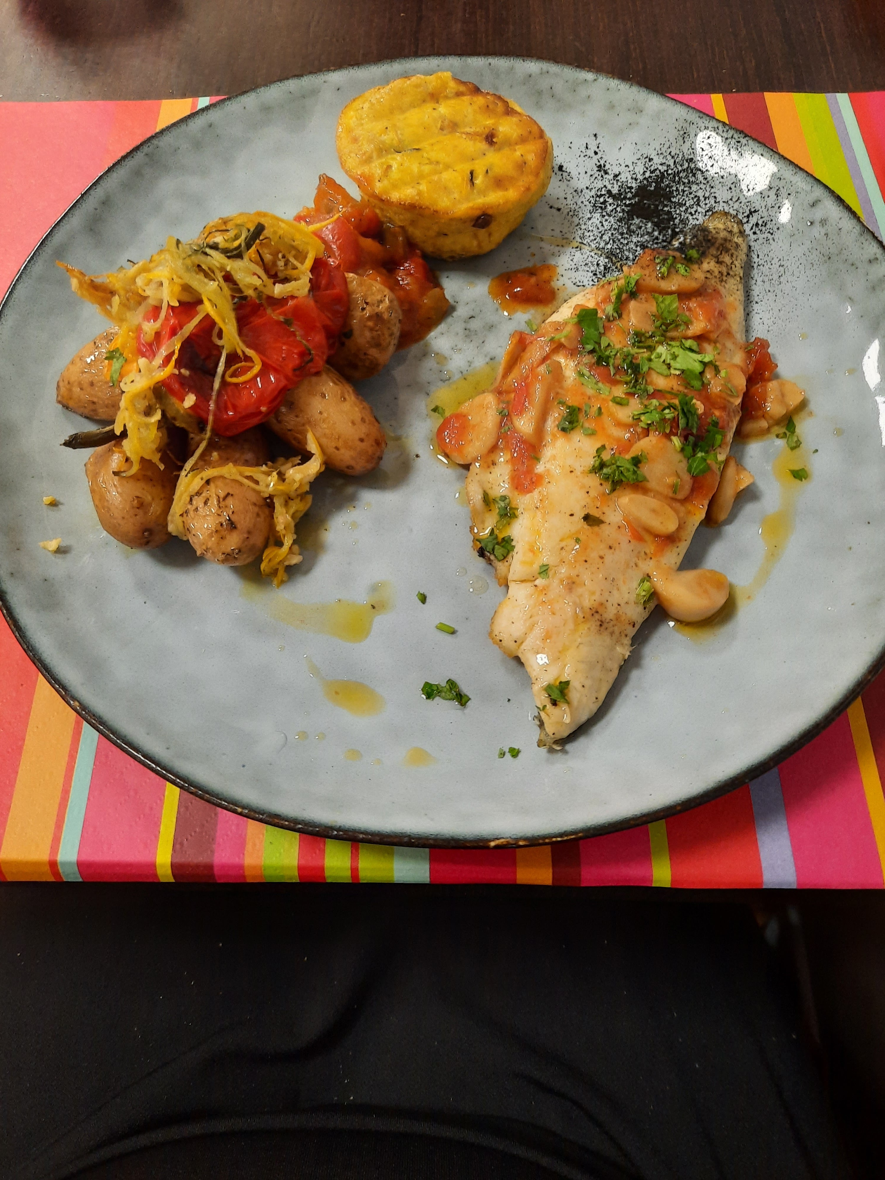 Excellent rapport qualité prix. Petite salade délicieuse, le poisson 🐟 et sa petite sauce, un régal... Et des gens gentils.