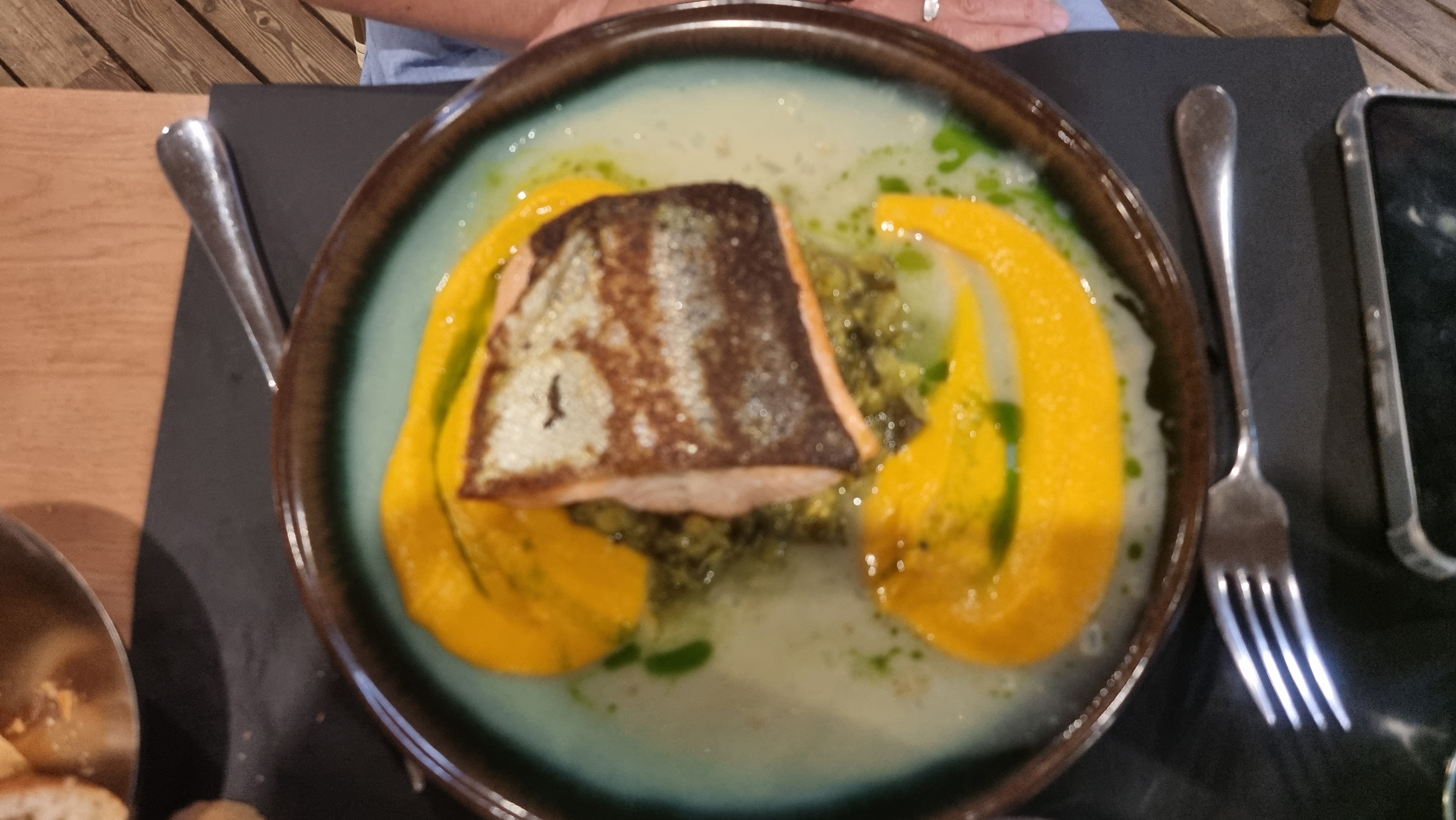 Le personnel est très souriant et attentionné et la cuisine est absolument succulente : on s'est régalés ! Pour un menu à 24€ ( entrée, plat, dessert), on a très bien mangé et c'était plus que copieux ! La joue de porc et le filet mignon à la forestière étaient tendres et juteux, la salade catalane et la César en entrée étaient délicieuses et que dire du tiramisu à la myrtille et la soupe de pêches au safran, une tuerie ! Le tout dans un décor de rêve.... What else ??