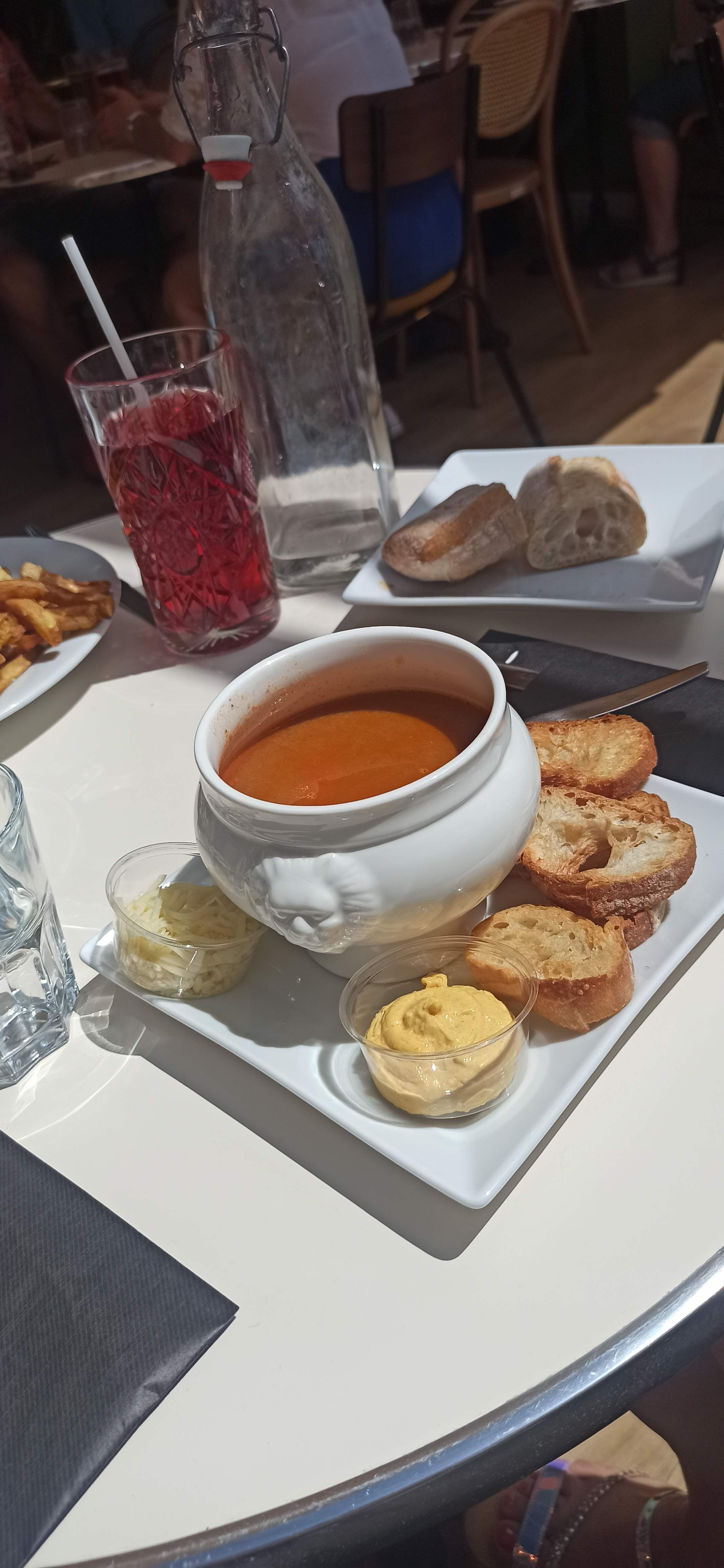 Nous avons trouvé ce restaurant par hasard, et la nourriture y est vraiment bonne. Mauvaise expérience néanmoins avec le fromage râpé servi avec la soupe de poissons, qui était largement passé : il sentait fort, avait un aspect blanchi et anormal, clairement impropre à la consommation. Nous l'avons donc signalé au serveur qui nous en ramené un autre (même aspect et même odeur) puis encore un autre qui pour le coup était différent et que nous avons mangé sans souci. L'erreur est humaine, un défaut de conservation est possible. Ce qui nous a par contre largement refroidi, c'est le manque d'excuses du serveur et surtout, l'absence de geste commercial (offrir un café, un apéritif...). De ce fait, malgré le bon repas, nous ne recommandons pas cet endroit et surtout, nous n'y reviendrons plus !
