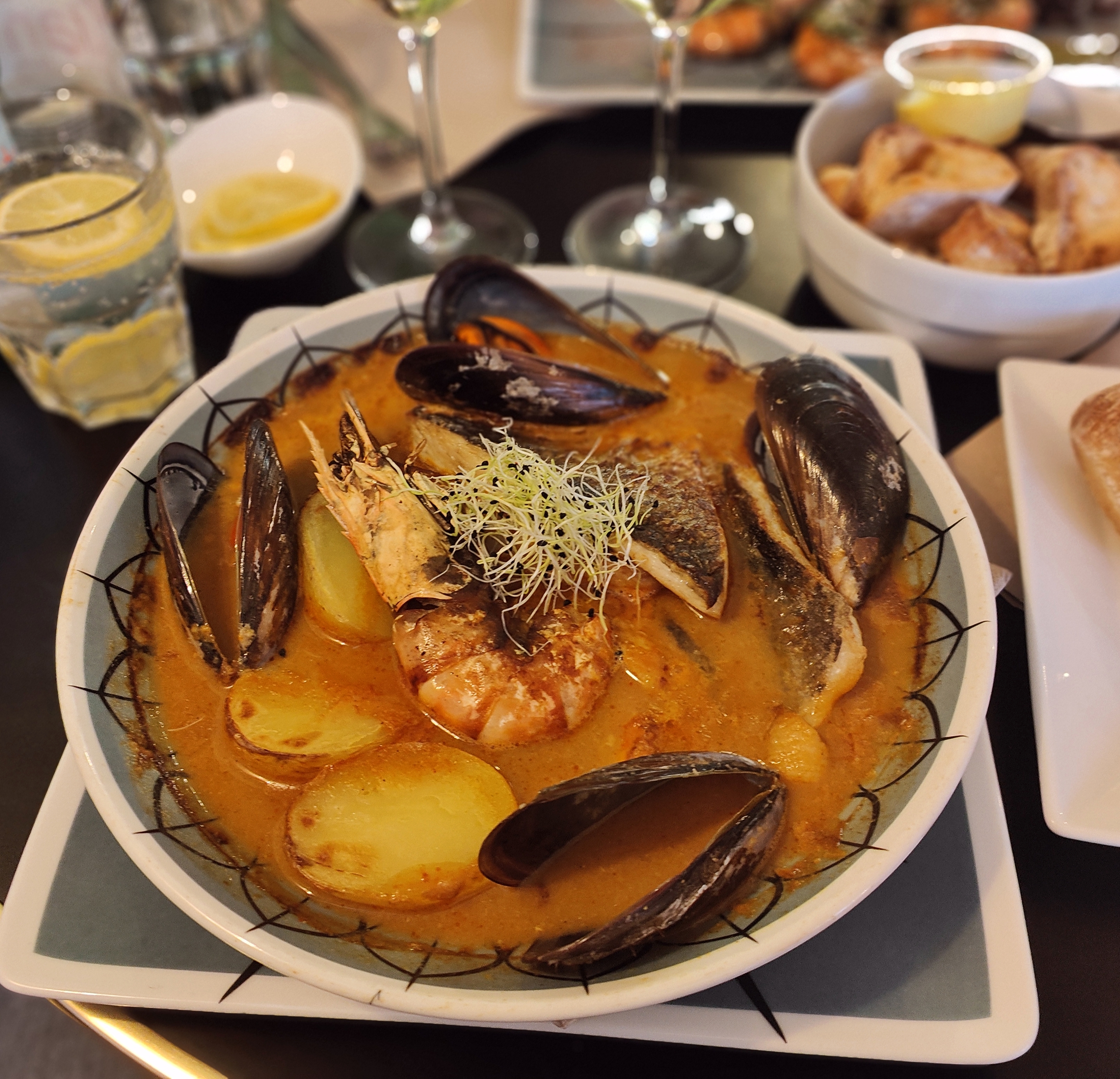 Personnels très accueillant. Nous avons déguster 3 plats (poisson du jour, parillada, bouillabaisse) délicieux. La vue sur la cuisine est agréable et permet de suivre l’élaboration des plats. Un Chef talentueux. Léger bémol : le café gourmand. Nous nous attendions à quelques chose d’aussi élaboré que le reste. Cependant Une adresse que nous recommandons