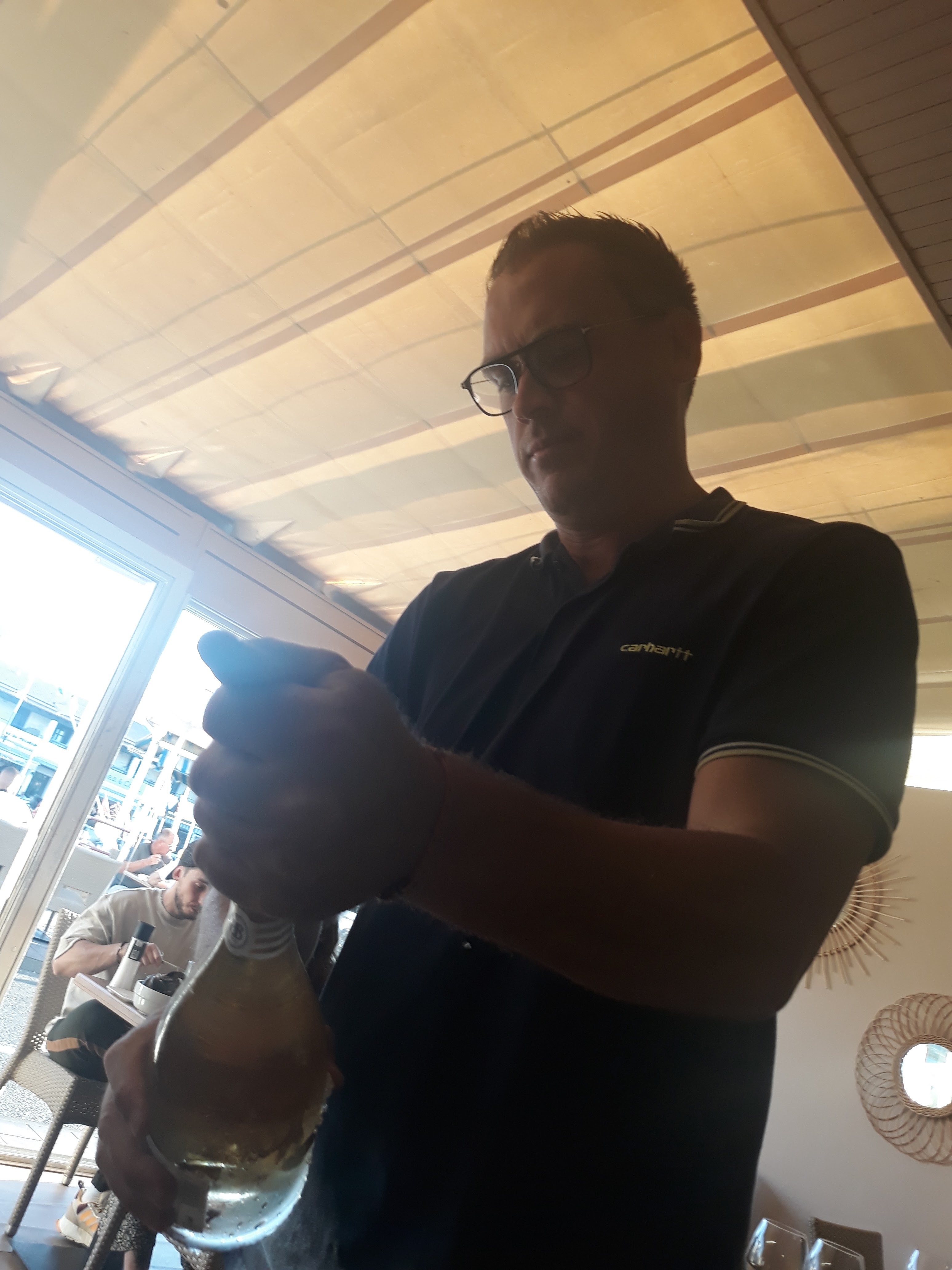 On, en sort c est la cata le pauvre serveur qui court dans tout les sens pour s occupé de toute c est tables qui attendent comme nous c est trop long en plus les moules marinières sont mi froide avec les frites maison mais froide y manque un serveur en plus c est le serveur qui me fait une remise sur la note même pas vue le responsable du resto c est dommage mais on été pas les seules a se plaindre je vais sur le site pour avoir des resto sur Palavas on me dit qu'il est bon mais alors monsieur le propriétaire Soyez a la hauteur de votre pub merci . PS : mais jai pas dit que c était pas bon Fd