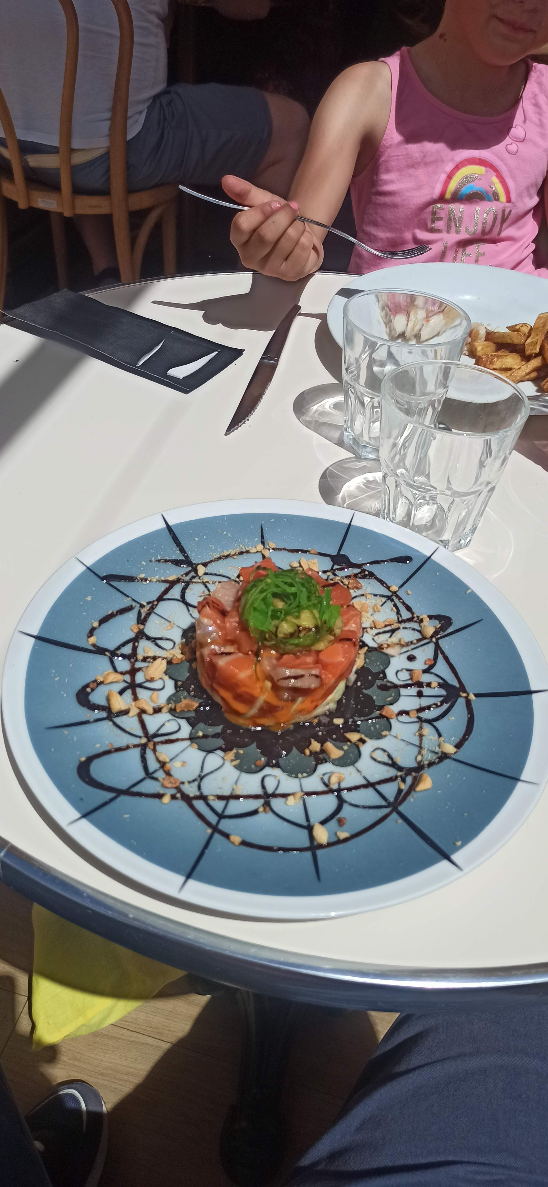 Déjeuner en famille en terrasse avec du soleil. Je recommande vivement ce restaurant