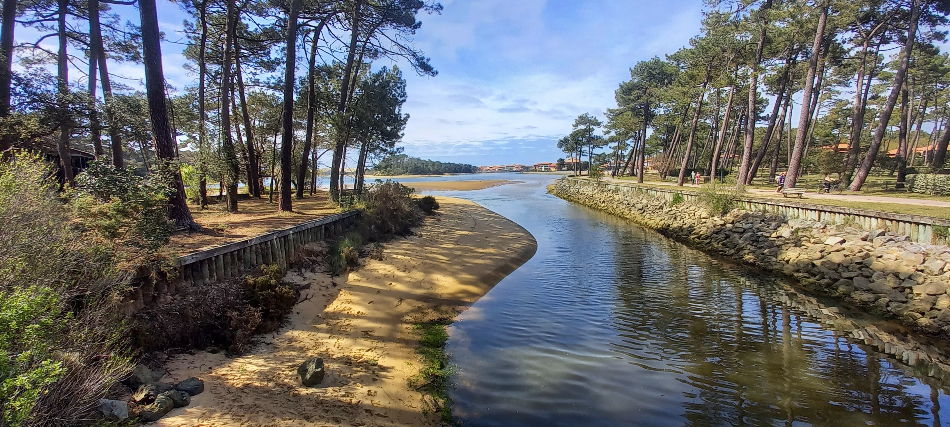 Lieu paradisiaque face à la plage du lac d'albret...vous pouvez déguster un verre, ou un plat, les pieds dans le sable à 10 m de la plage ... vraiment sympathique...