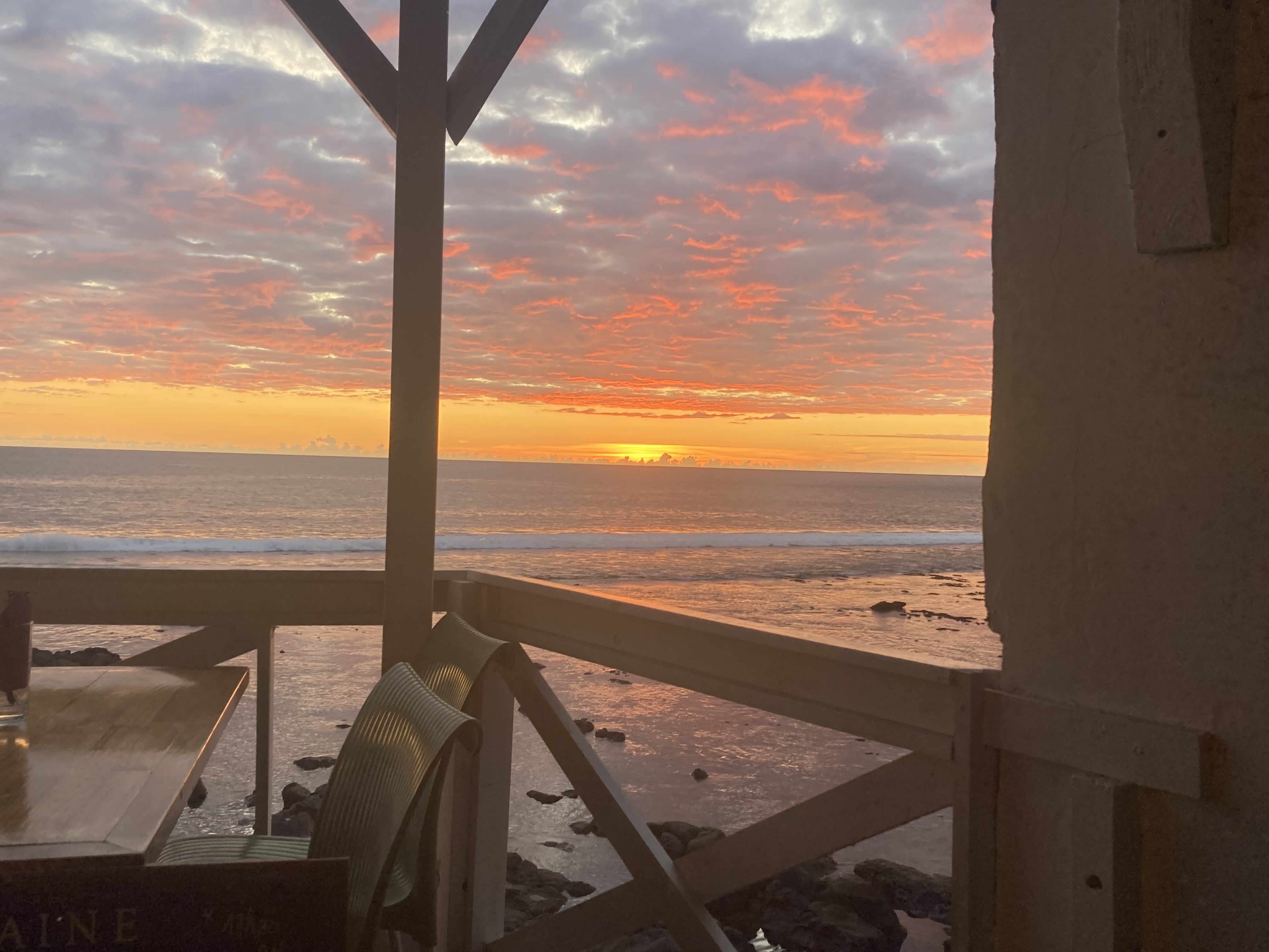 Terrasse ombragée au plus proche de l'océan pour admirer la vue, personnel et gérant très sympathique ce qui en fait un lieu idéal pour boire un coup ou manger au calme.