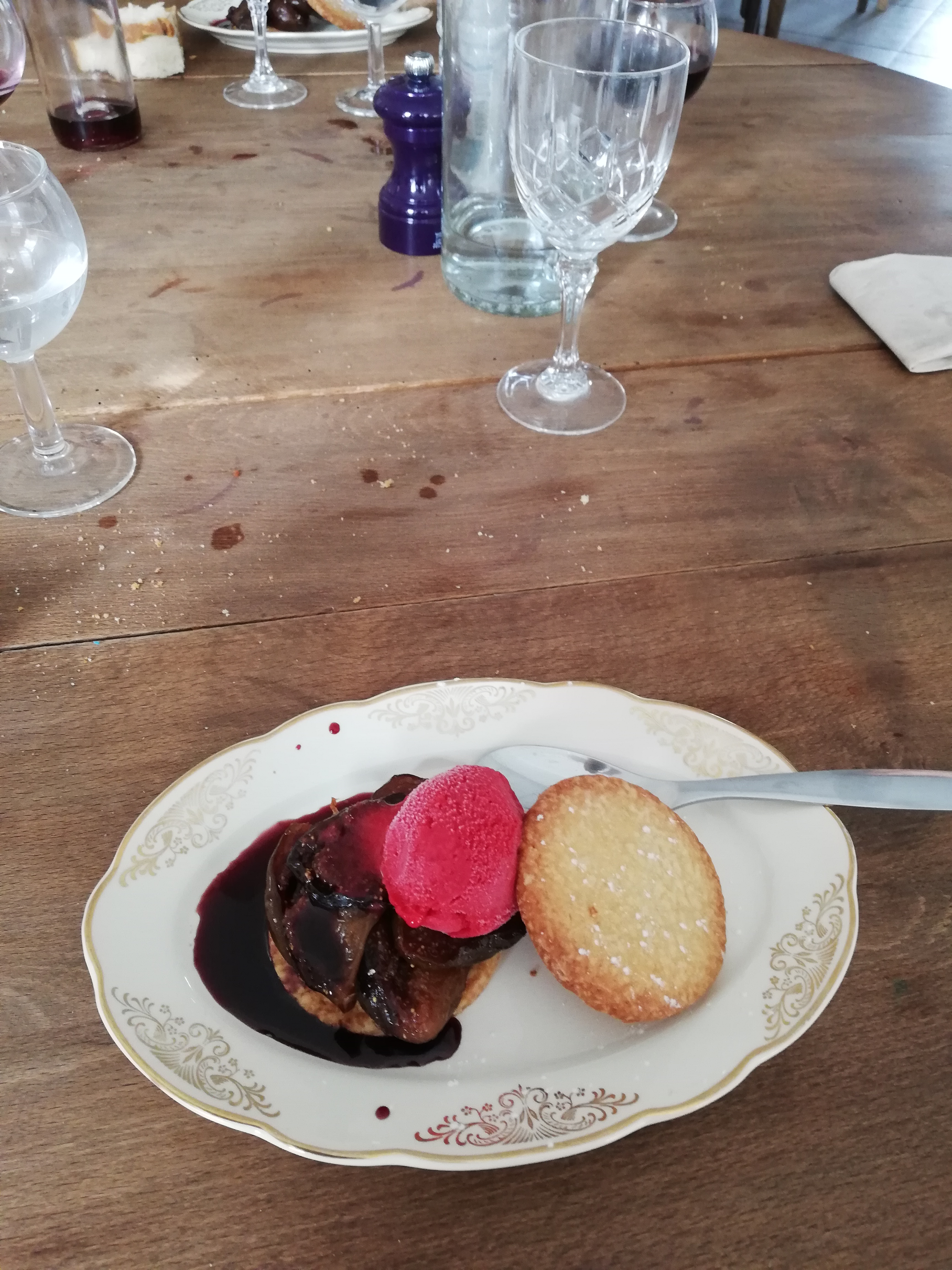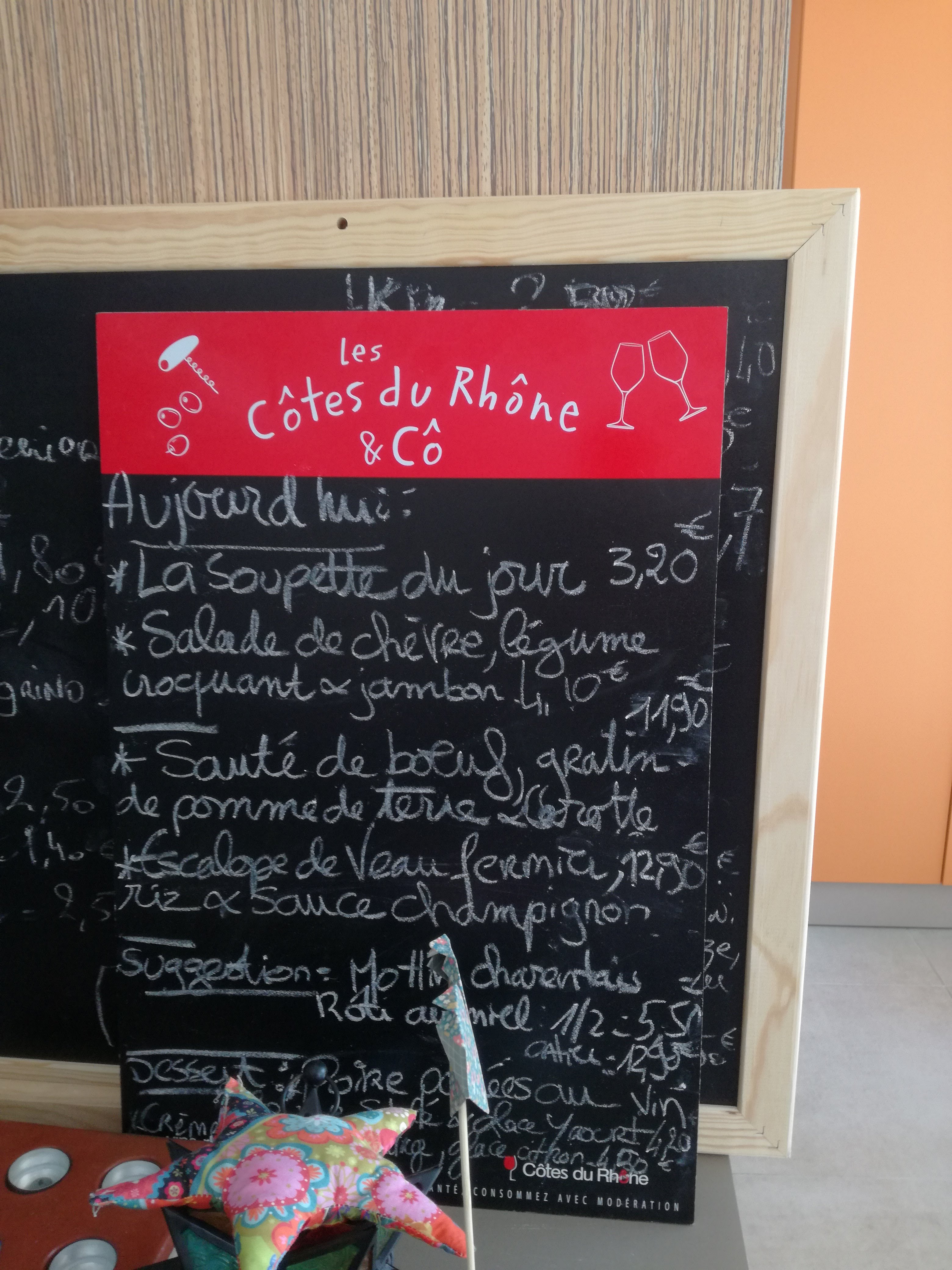 Excellent déjeuner à trois plats, et pas le fayre français rustique habituel - aujourd'hui, nous avons eu un délicieux porc à la mexicaine pour le plat principal, qui était incroyablement savoureux !