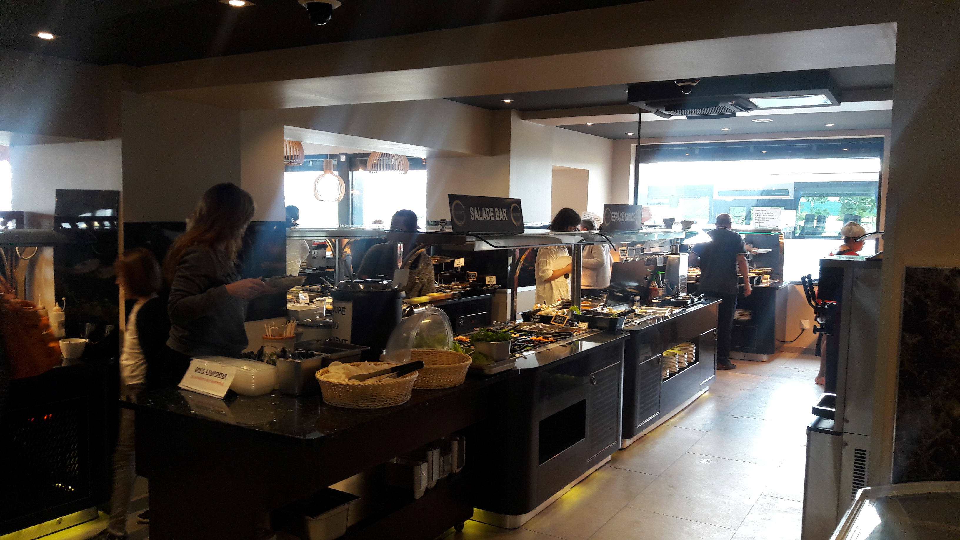 Nous étions 4. Qualité de la nourriture très médiocre. On ne s’attend pas à de l’excellence dans ce principe de buffet mais là les cuissons étaient vraiment moyennes et le goût moyen également. On a été globalement déçu. Décor et ambiance sobre et sympa.