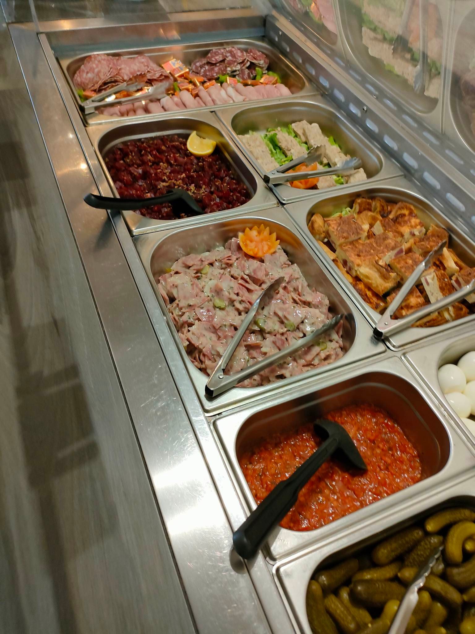 Personnel très sympathique. Le buffet est très varié et les produits sont frais même à 14h. Manger français et de plus local à petit coût c'est parfait. Agréable surprise aussi bien en salé comme en sucré ! ! Idéal pour toute la famille petit et grand.