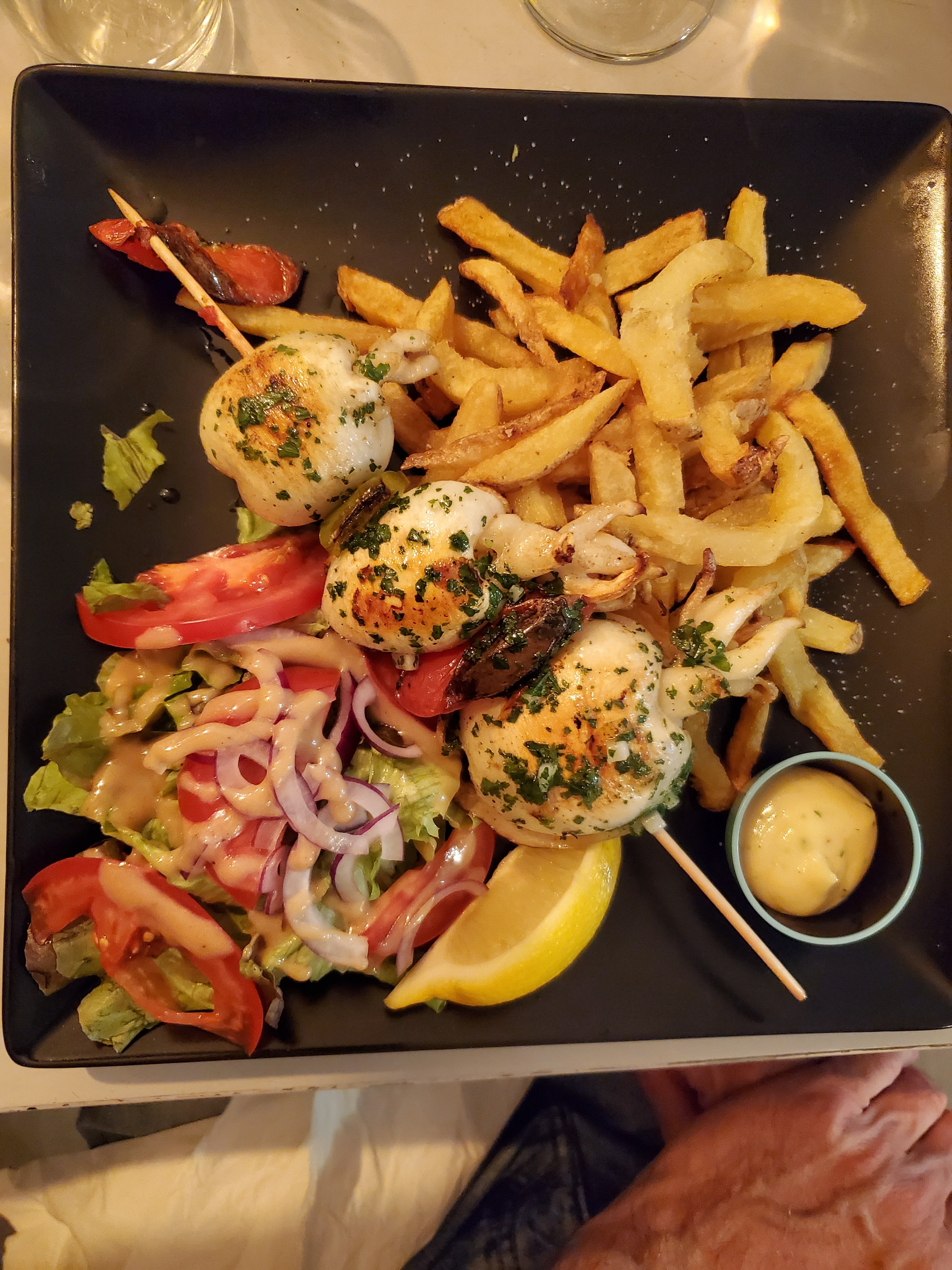 Très bon petit restau, la brochette de seiche a la plancha était délicieuse, cuisson parfaite ! Accueil très sympa du patron, on s est régalé