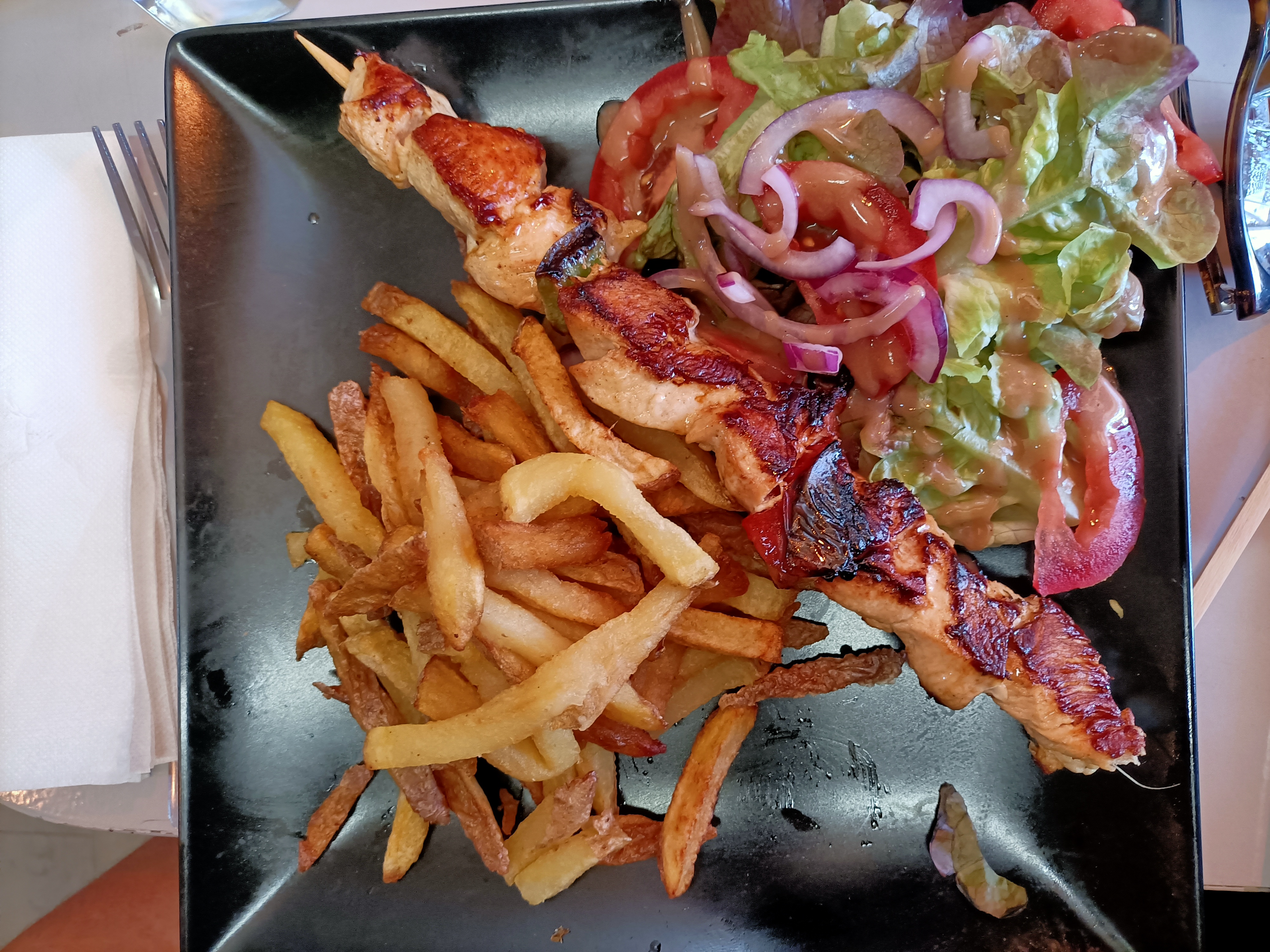 Très bonne surprise, les brochettes sont excellentes et les frites également. Bon rapport qualité-prix pour des plats copieux. Service rapide et très sympathique. Nous reviendrons !