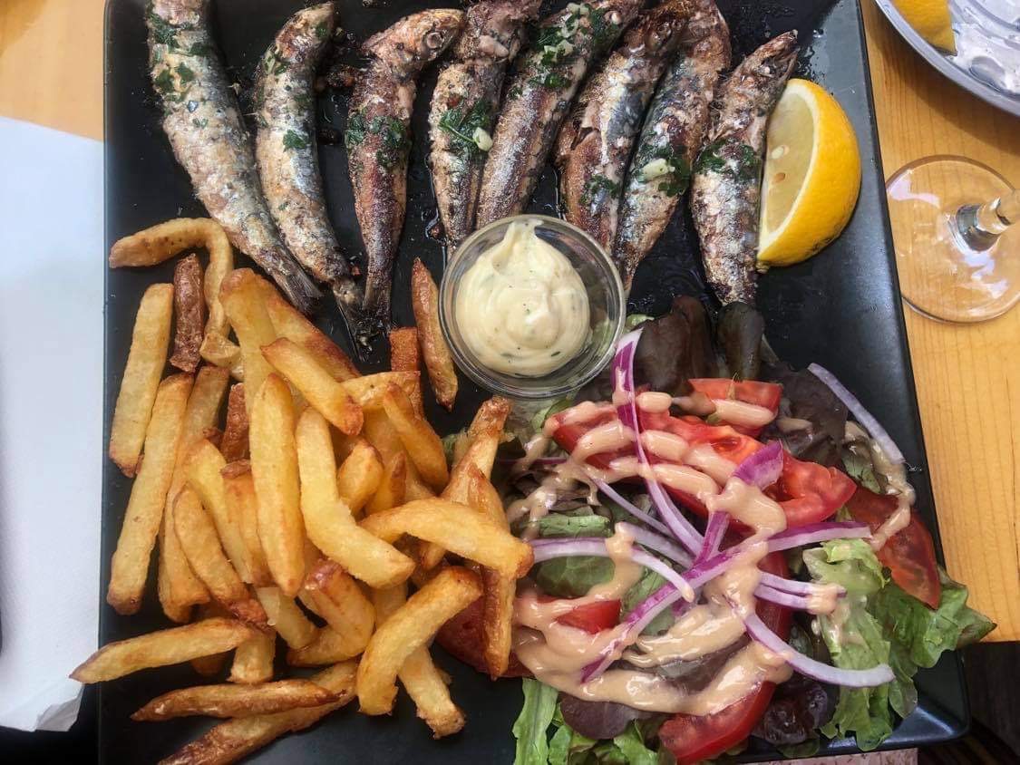 Déjeuner par hasard dans ce restaurant et agréable surprise ! Super accueil du patron, apéro avec sardines et petits poissons grillés : cuisson parfaite, un régal !! Puis des brochettes de seiches au chorizo avec de bonnes frites maison ! Un délice ! Je recommande !
