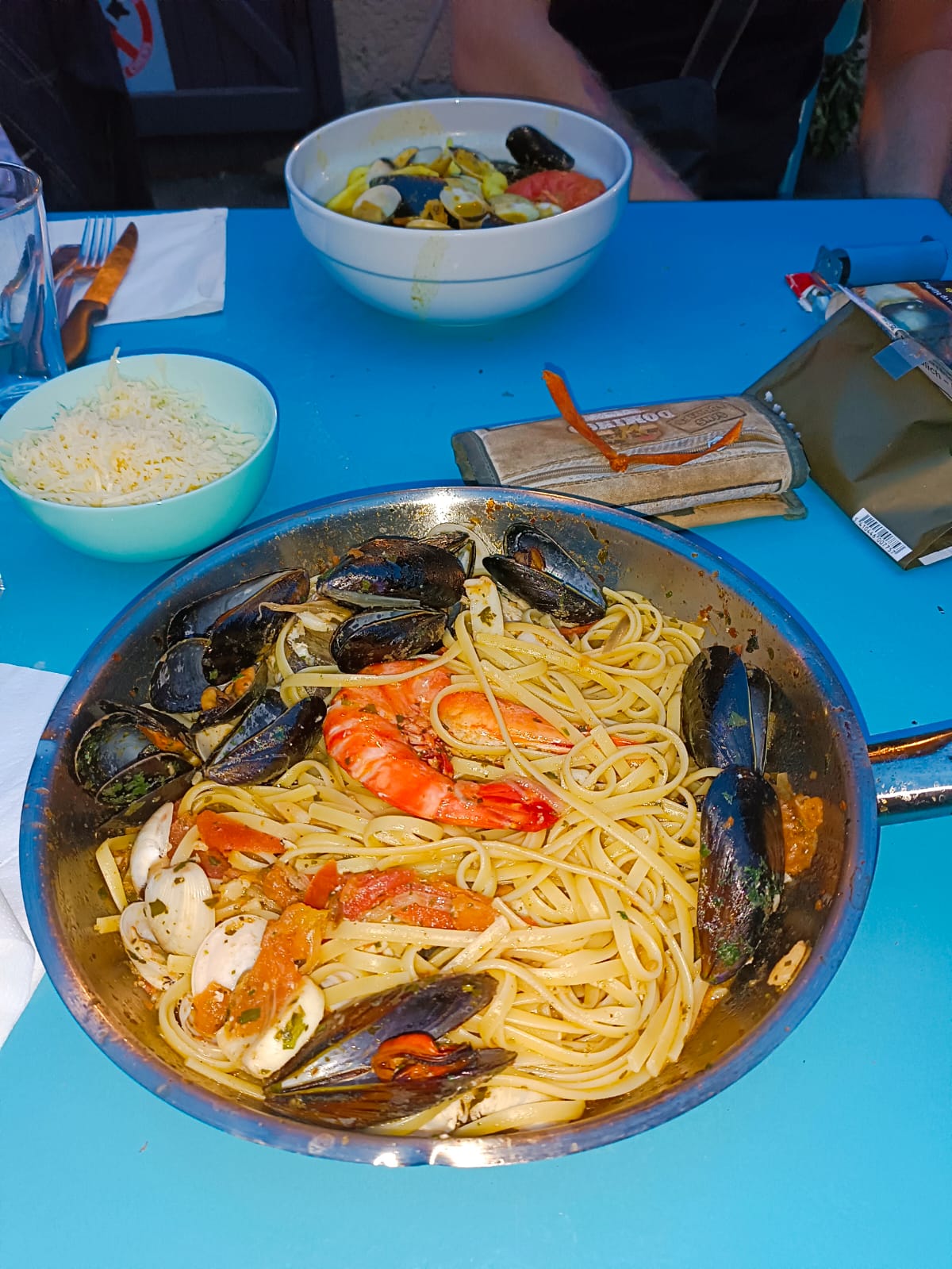 Trop bien j'adore les linguines del mar je ne m'en lasserai jamais et la mousse au chocolat de Jean Luc c'est trop bon.