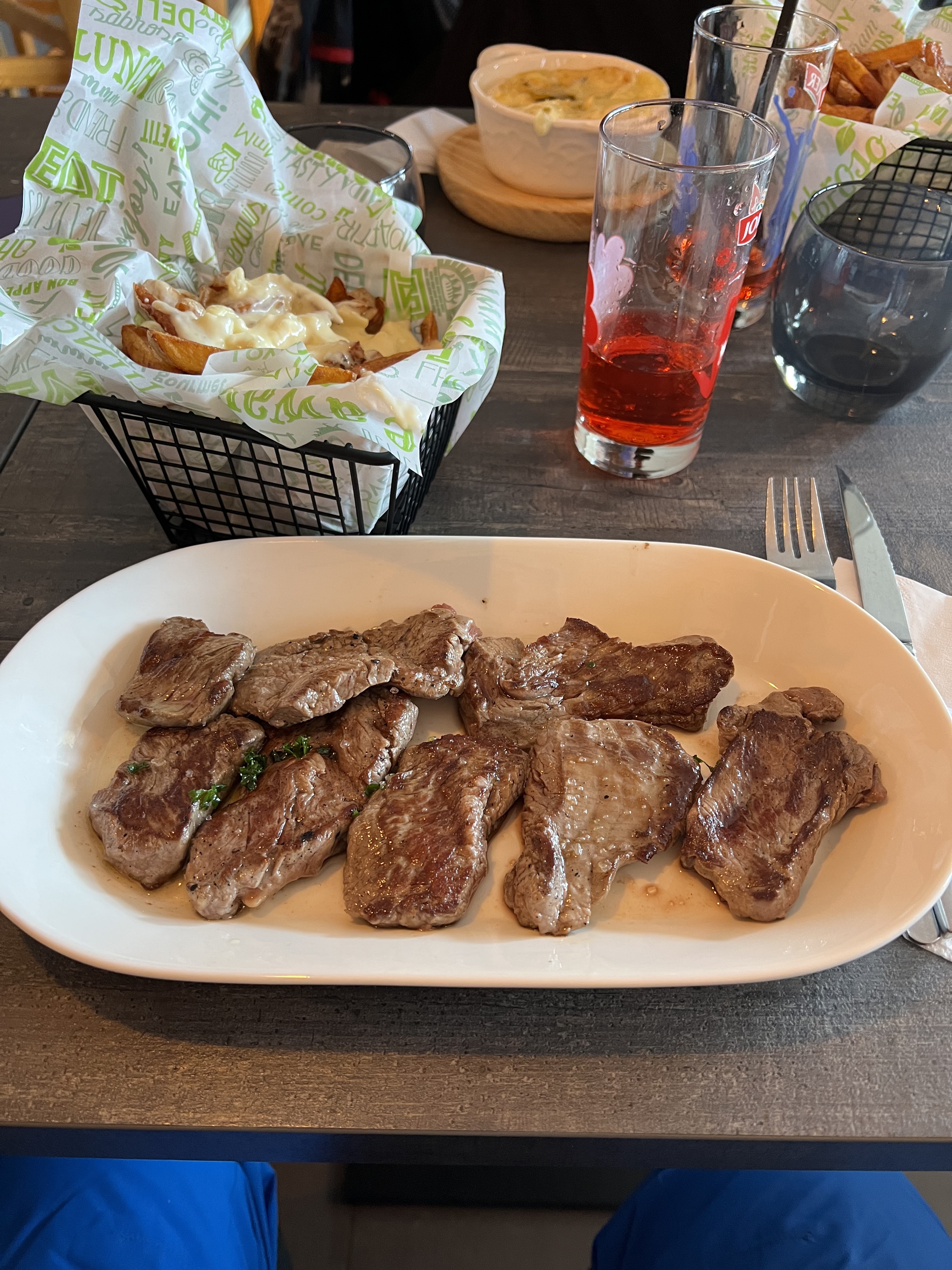 2 apéros durant la semaine On commence par une IPA locale ou un spritz de Savoie … on enchaine avec les planches de fromages ou de charcuterie ou alors les copain/copine ou la boite chaude avec les frites maison On n’oublie pas la burrata ou les joëls frits … Bref on passe une super soirée avec des hôtes forts sympathiques Une adresse à connaître et à partager si vous êtes dans le coin !!