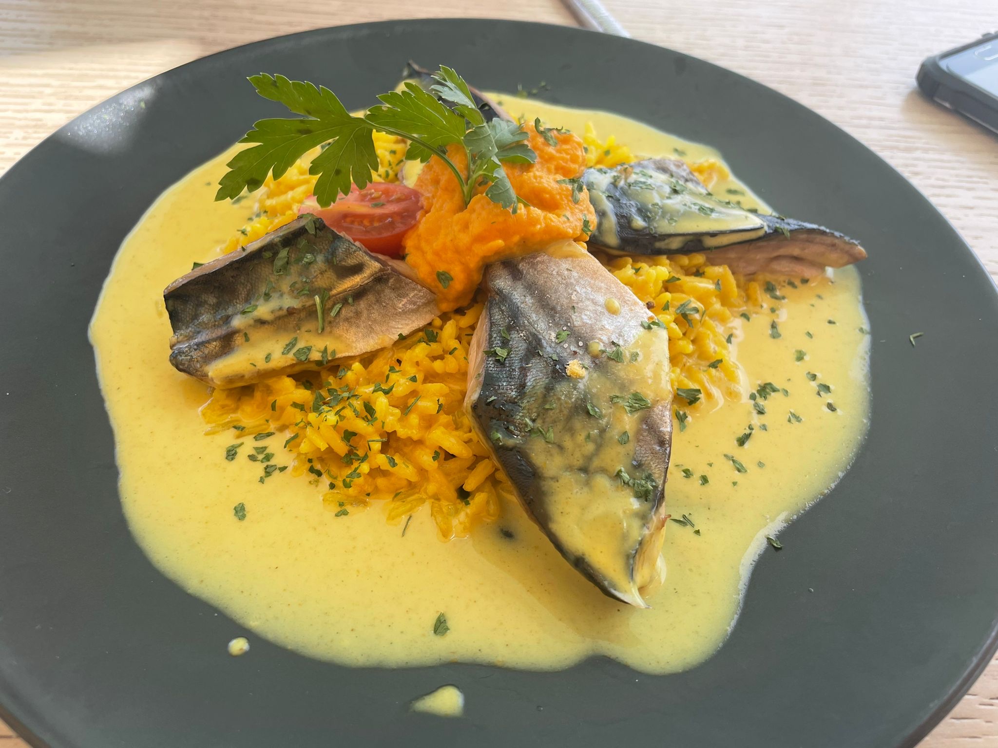 Restaurant réservé en suivant les avis Google très positifs, malheureusement nous tempérons cette note moyenne: le rapport qualité prix n’est pas au rdv, salade en sachet, riz style paella comme à la cantine sans saveur, poisson sans aucun assaisonnement et sans saveur.service agréable mais ne mérite absolument pas un classement en n•1. Nous sommes très déçu pour une addition à plus de 70€(une entrée, deux plats, pas de dessert et une bouteille de vin).