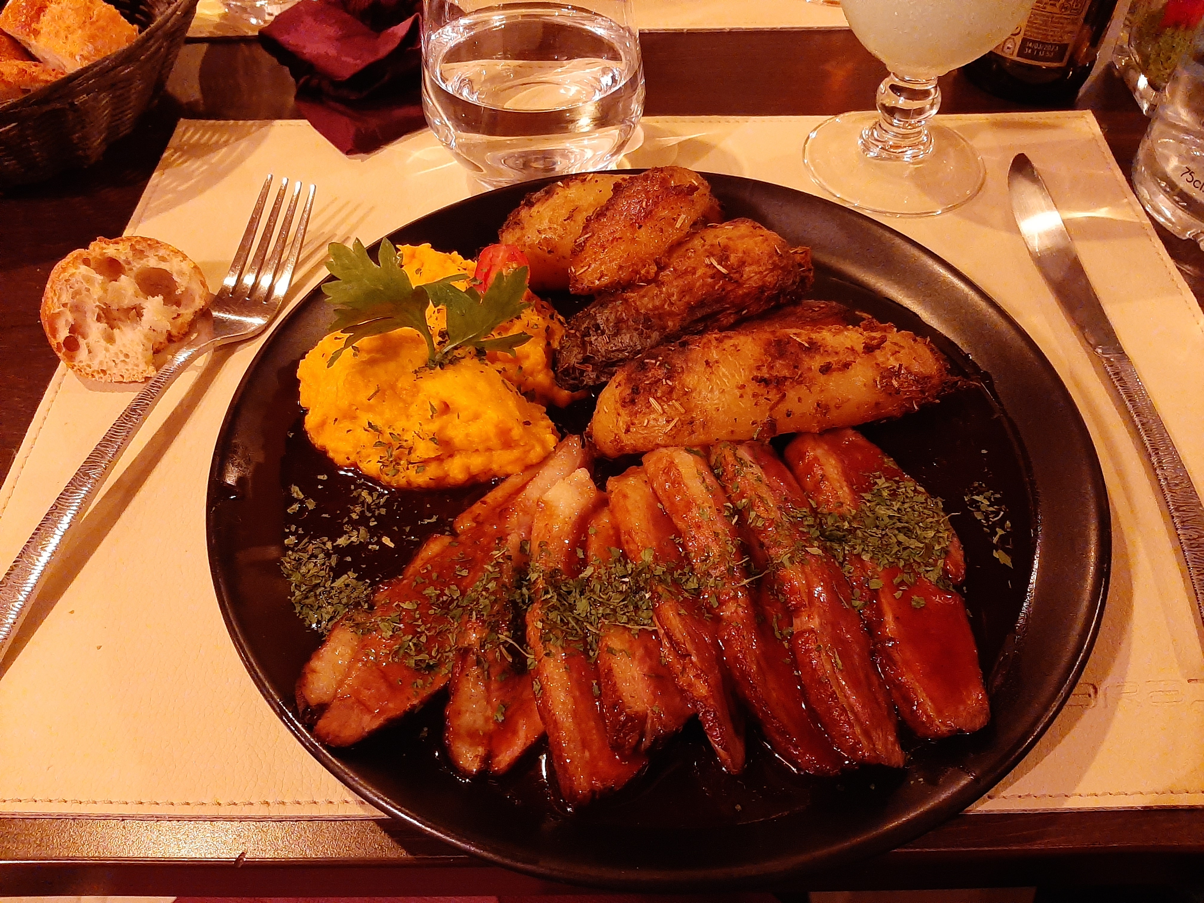 Une cuisine parfaite une viande excellente idem pour le dessert et le serveur très agréable. Le geste à la fin du repas très agréable et un menu petit prix. On y retournera. À conseiller. Nous sommes venus à trois avec notre fille et même elle très difficile a aimé le repas (camembert rôti pour elle)