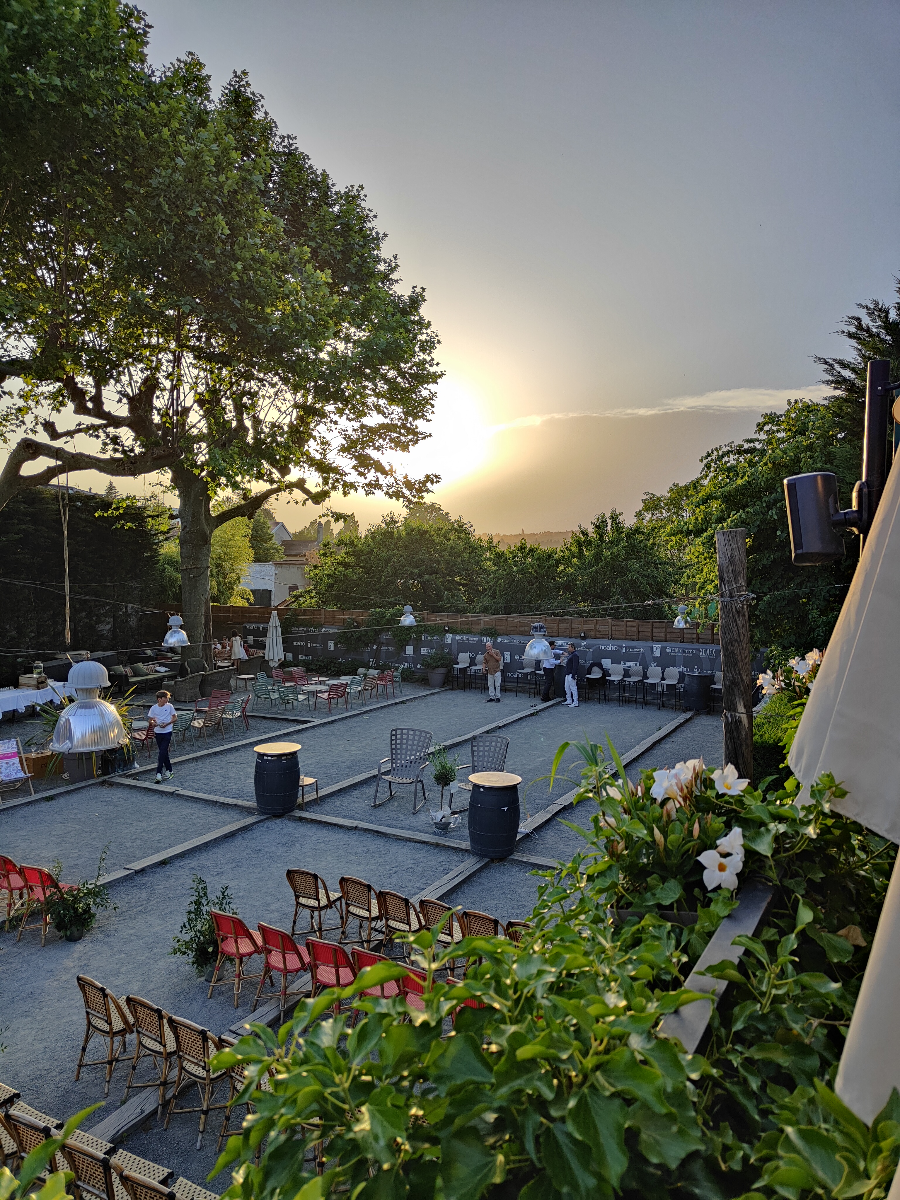Un spot parfait pour l'été ! Si vous avez envie d'un chouette cadre pour chiller et faire de la pétanque entre amis c'est l'endroit idéal. Il y a aussi toute la partie haute qui fait restaurant. Et en plus le cadre est vraiment chouette, avec de jolies bâtisses en pierres.