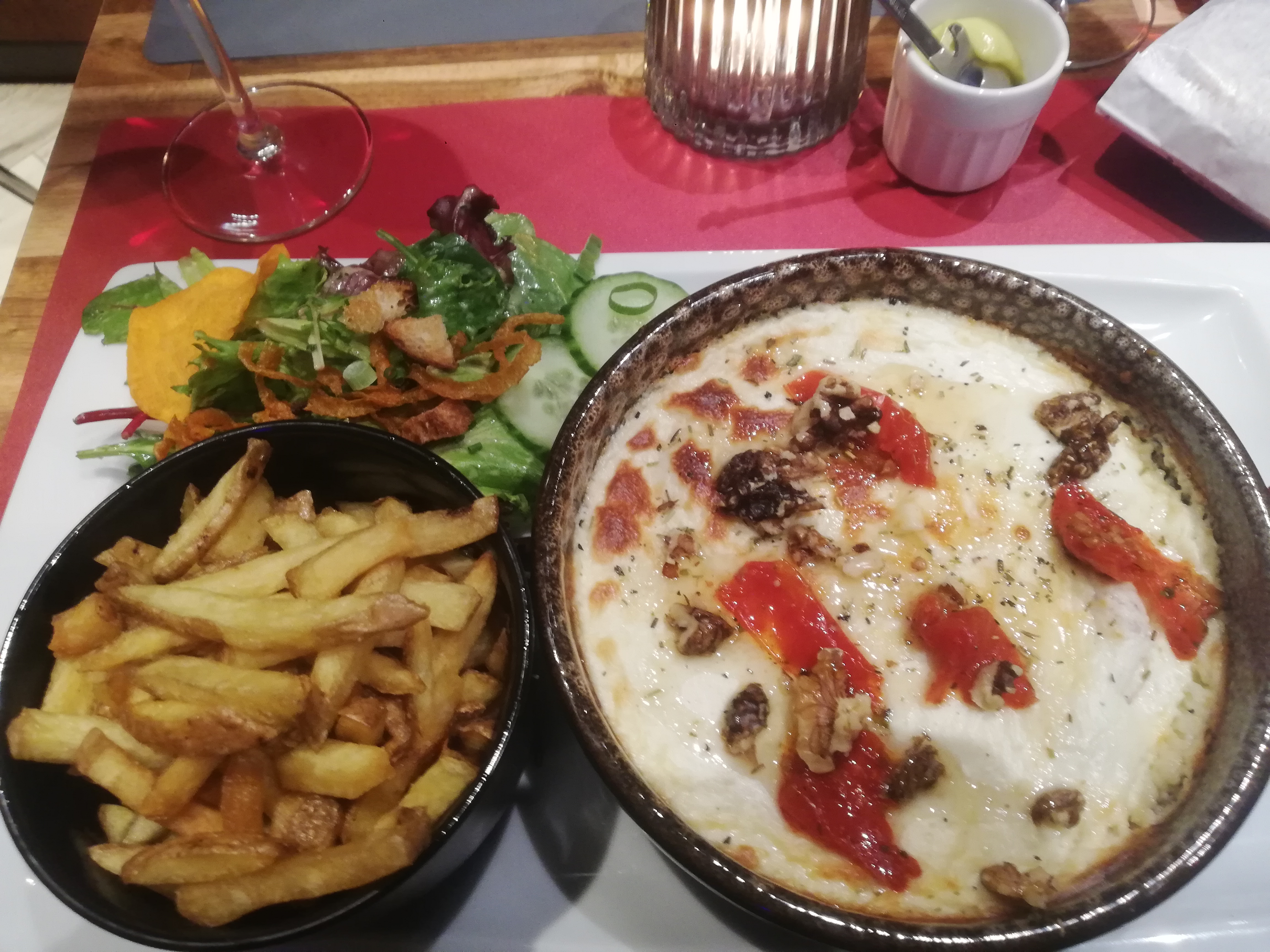 Un super moment passé au restaurant ! Un accueil chaleureux, avec le sourire tout du long et avec toutes l'équipe aux petits soins Des plats aussi beaux que bons pour un prix bien en dessa que ca pourrait être pour la qualité Tellement bon qu'on est revenu une 2e fois en 3jours Mention spéciale pour le Welch au chèvre 🤤