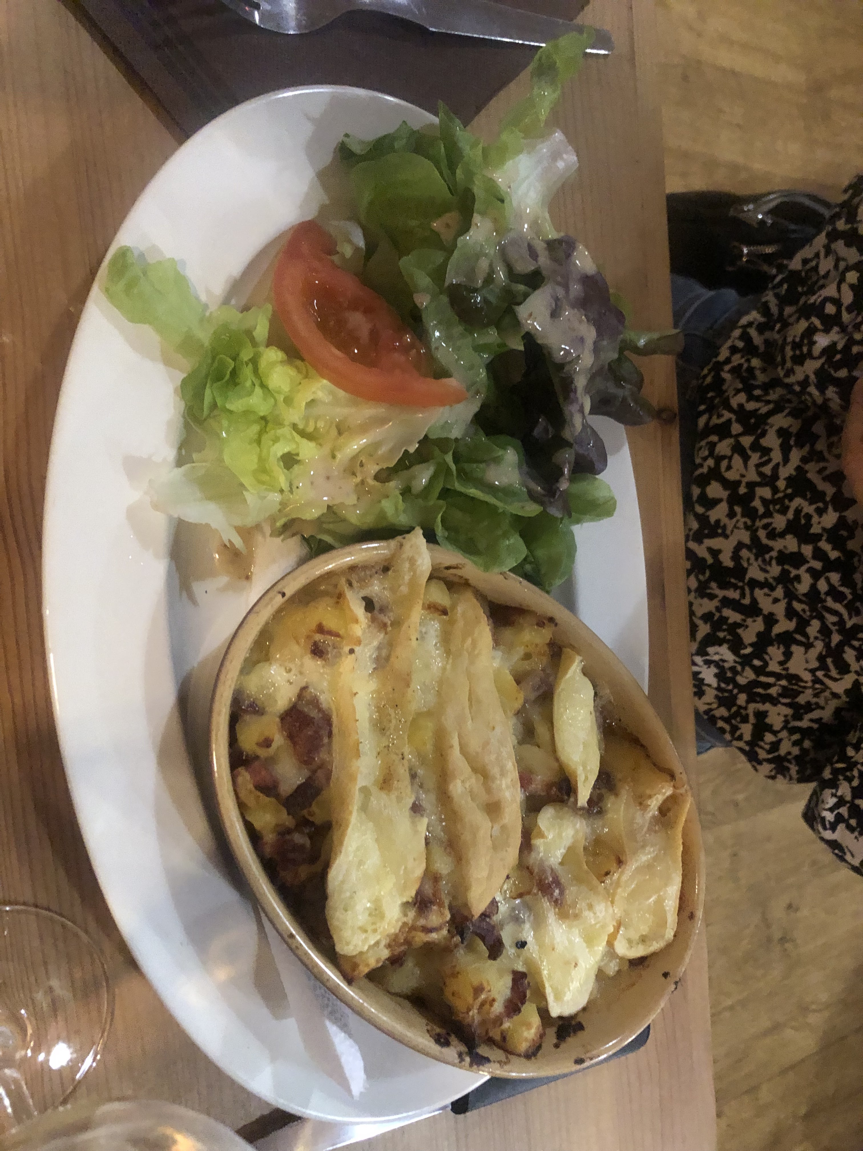 Ce lieu fait plutôt cantine que restaurant. La tartiflette était fade et la salade mal nettoyée (selon la serveuse ce n'était pas la première fois ce soir la). Salle très bruyante et servieuse débordée (sûrement par manque d'organisation) on a du attendre 30 min pour qu'on nous demande si nous voulions un apéritif... Idem pour le repas