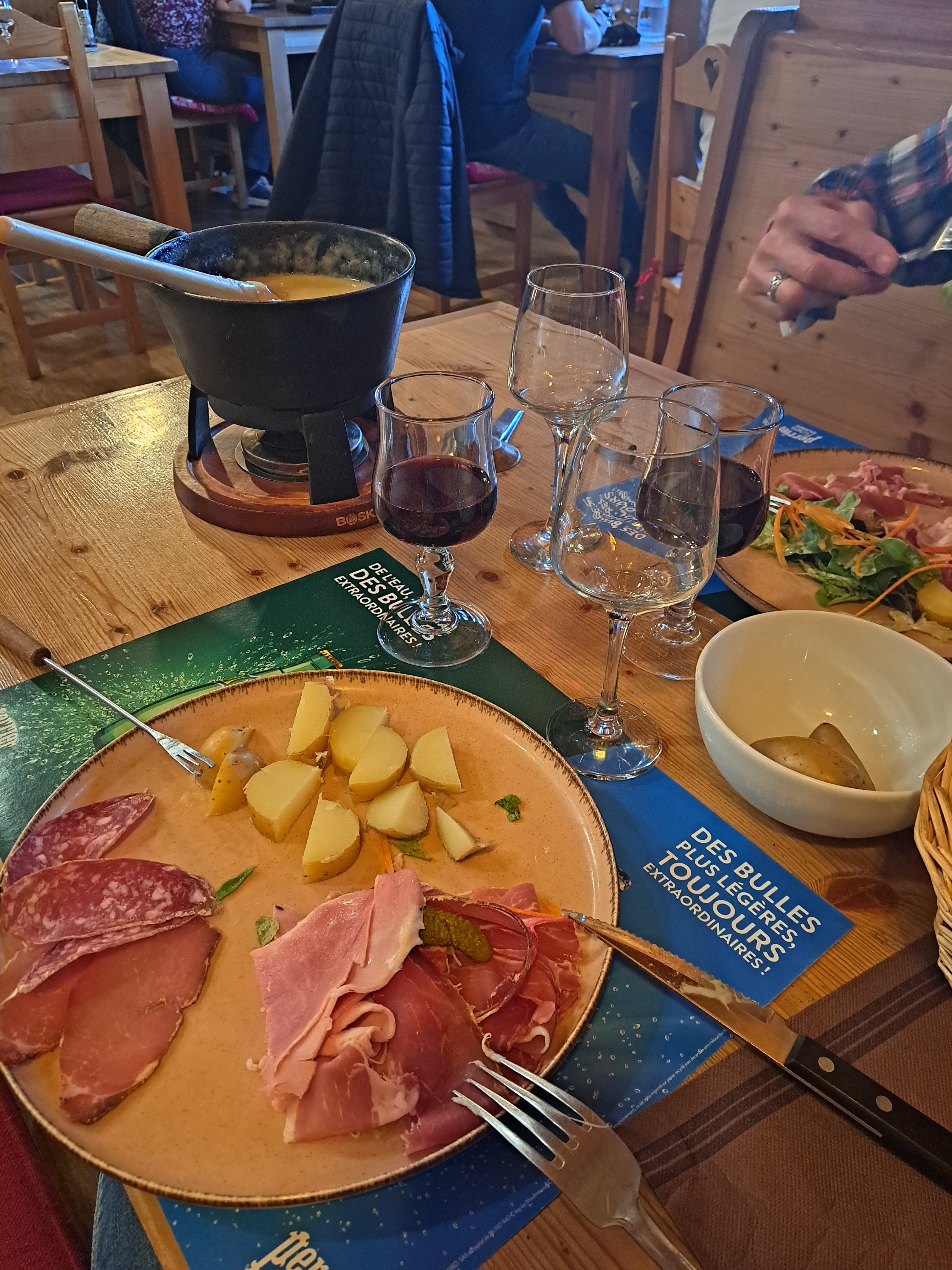 Bon accueil serveuse agréable service assez rapide. Nous avons commandé fondue du chalet très bonne il manque quand même un peu de charcuterie à mon goût quelqu'un qui aime manger je pense qu'il restera un peu sur sa faim... 🍷⛷️