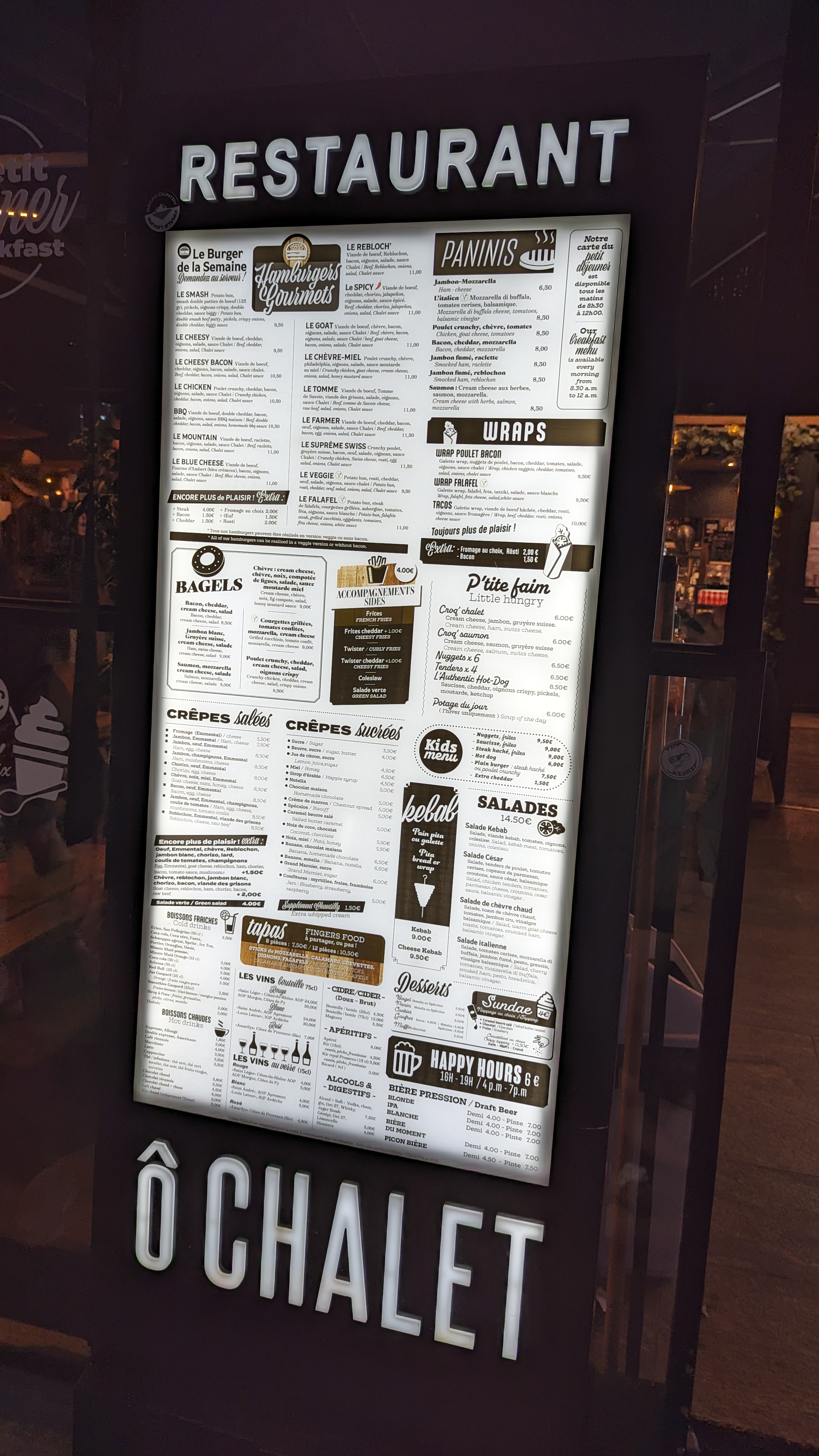 O’Chalet, avant, c’était bien. Mais ça, c’était avant… Le succès c’est très bien et probablement mérité au regard de la qualité de l’offre street food proposée, mais quand c’est au détriment de l’accueil, devenu déplorable, ça devient un boulet, manifestement trop lourd à porter par l’équipe actuelle :-( Quand tu viens en famille depuis des années, et pour la 3eme fois en 5 jours cette année, et que tu t’entends dire au moment où tu demandes s’il est possible de déjeuner…”on va calmer un peu le jeu là monsieur”, tu ne peux être que déçu… On regrette le temps où Remi nous accueillait si chaleureusement…