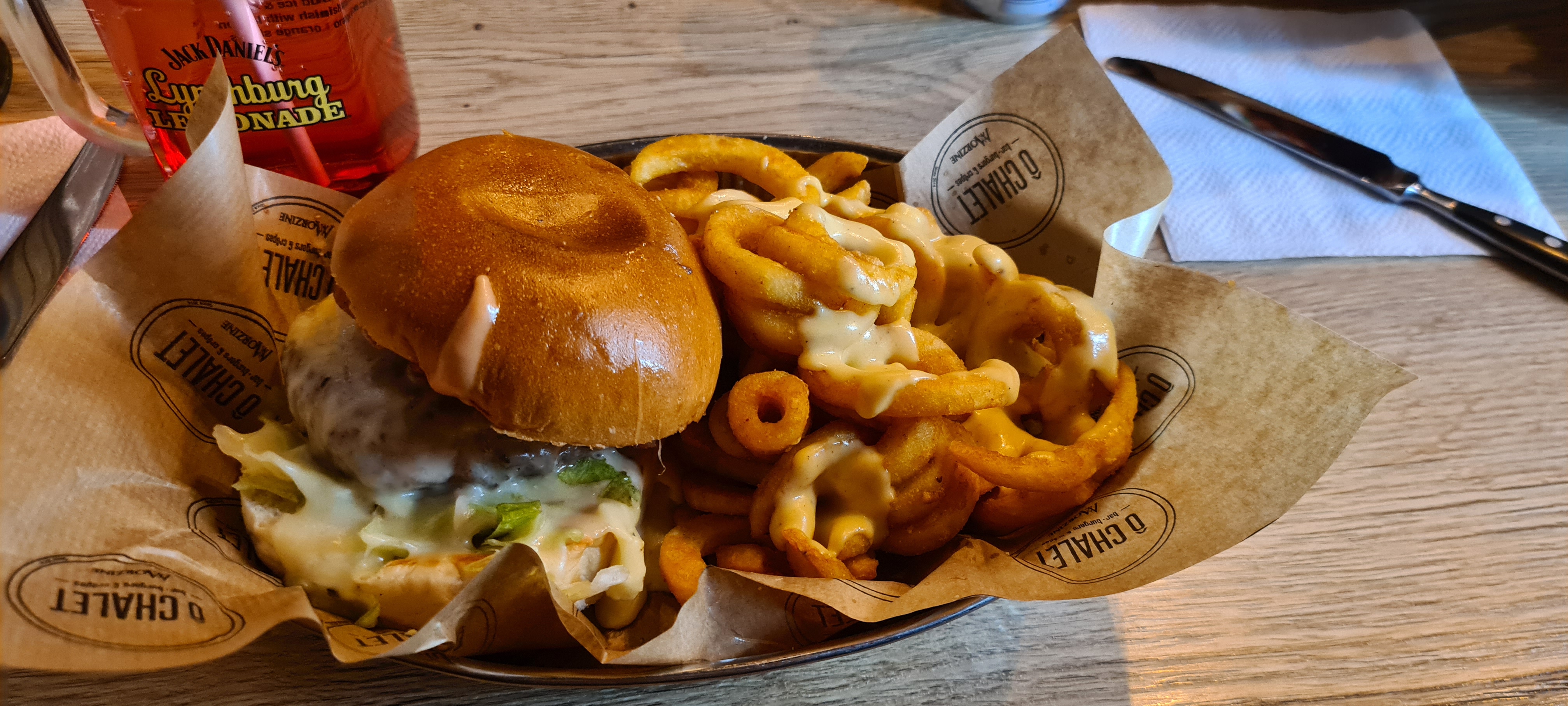 Je demandais à des amis où aller pour le meilleur burger de la ville - c'est un concurrent ! Je n'ai rien à redire, même si je n'ai pas repéré la salade de chou comme accompagnement. 😉 Mon fils et moi avons commandé : Supreme Suisse Burger - poulet au fromage suisse, superbe Burger au fromage bleu - parfait, mi-saignant Rondelles d'oignon – les rondelles d'oignon les plus croustillantes (pour moi jamais !) Twister/Curly Fries - d'accord, ce sont des frites/chips, mais d'excellentes frites ! Des burgers entre 9-12 €, des frites 4 €, des bagues 7,5 € (pour 8) et une bière blanche 7 € - je dirais un bon rapport qualité-prix pour manger à Morzine. Excellent service, équipe super sympa et heureuse, et même à la fin de la saison d'hiver, je vous souhaite à tous de bonnes vacances bien méritées ! Et de superbes vidéos pour vous garder dans l'ambiance du ski même lorsque la neige est partie - j'ai vu une nouvelle vidéo avec les héros locaux des Portes du Soleil sur leur écran MASSIVE 😀