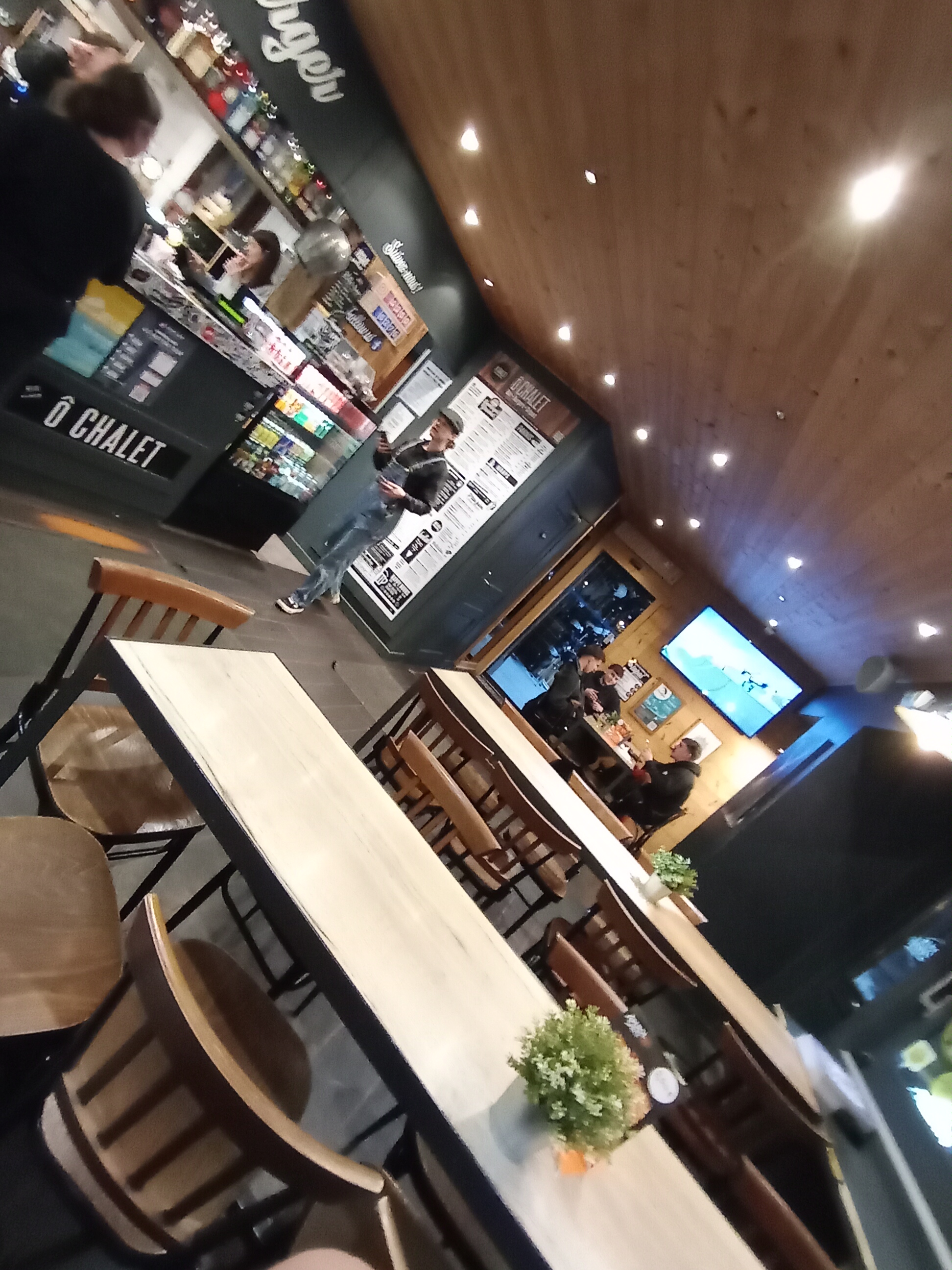L'endroit idéal pour un déjeuner copieux ou même le soir après une journée sur les pistes. La nourriture est fantastique !! J'ai mangé quelques hamburgers à différents jours et ils étaient incroyables ! Les bagels chauds sont magnifiques et parfaits pour un déjeuner léger, et les wraps chauds sont délicieux aussi ! Le personnel est également fabuleux ! Toujours prêts à rire tout en étant très efficaces dans ce qu'ils font. Terminé dans une atmosphère chaleureuse et accueillante, O Chalet est vraiment un endroit idéal pour manger et boire !