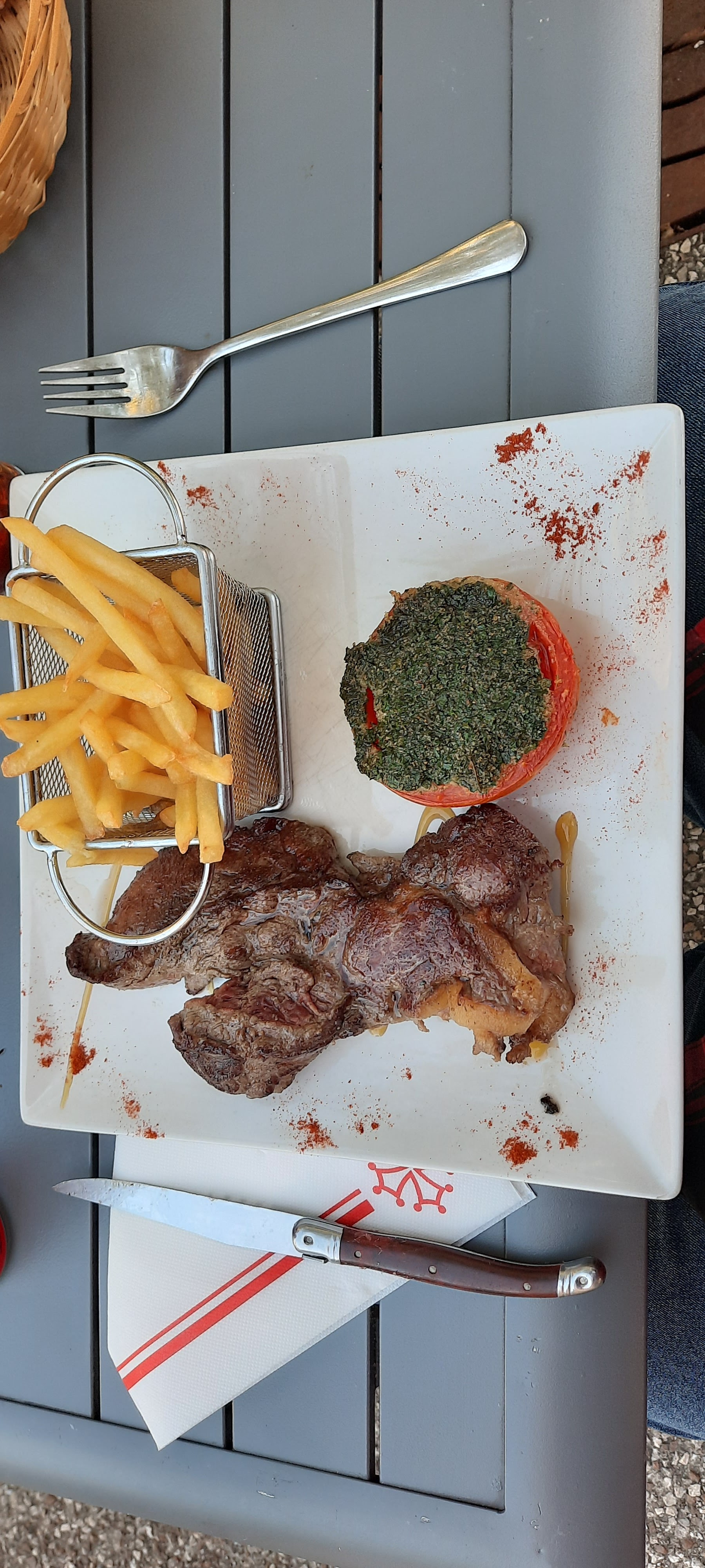 Nous avons bien mangé, Dommage que la viande un peu trop cuite. Bonne salade. Jolie assiette