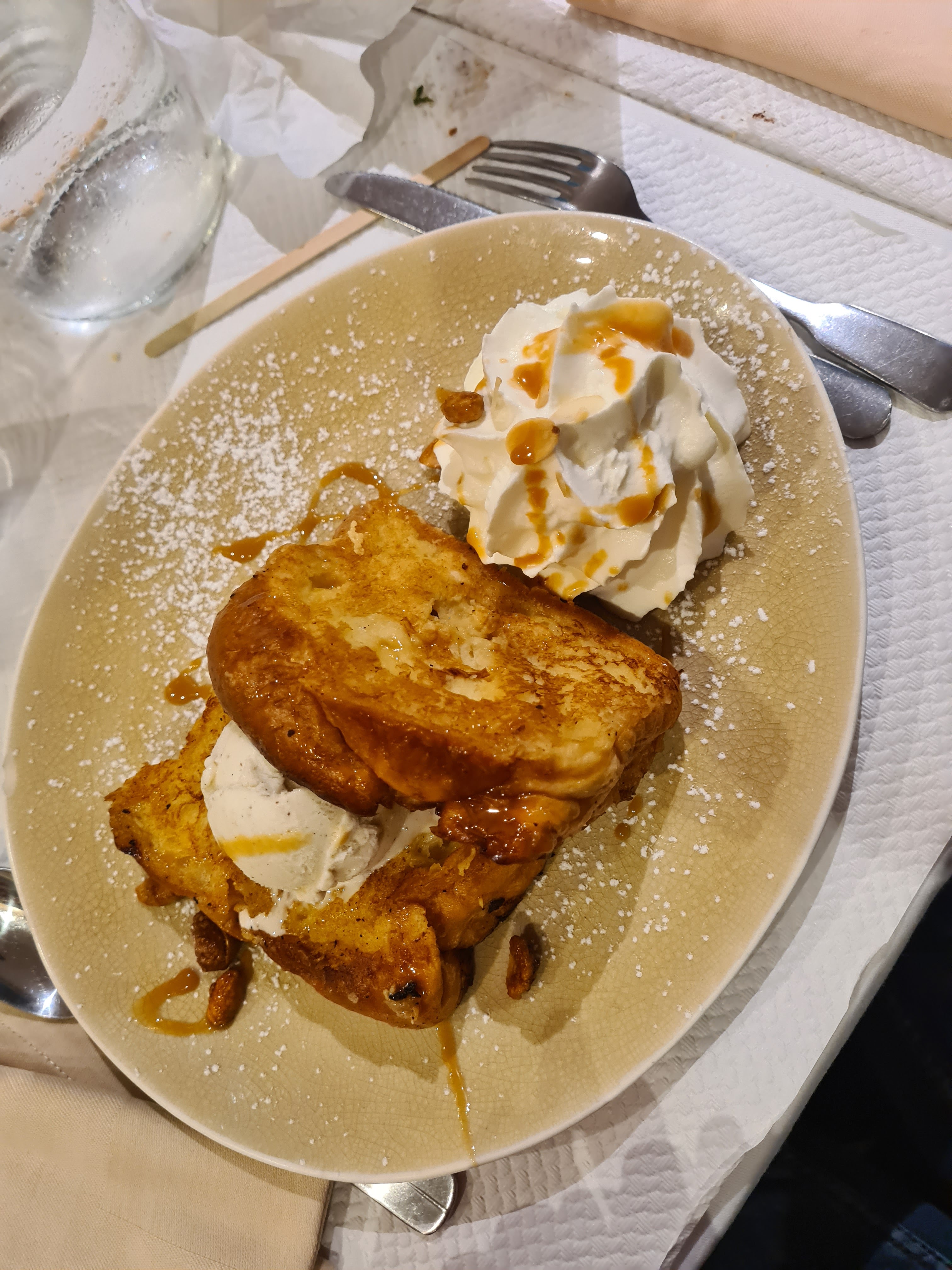 Dîner en famille très bien. Créme brûlée un peu froide au centre.