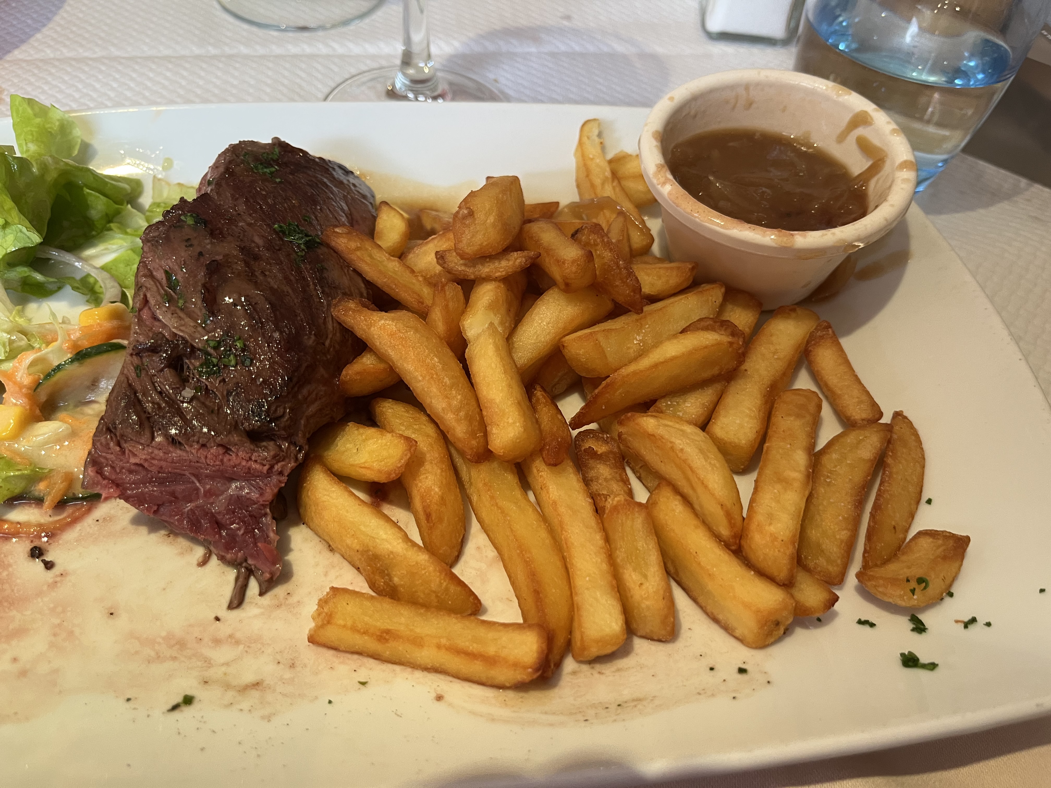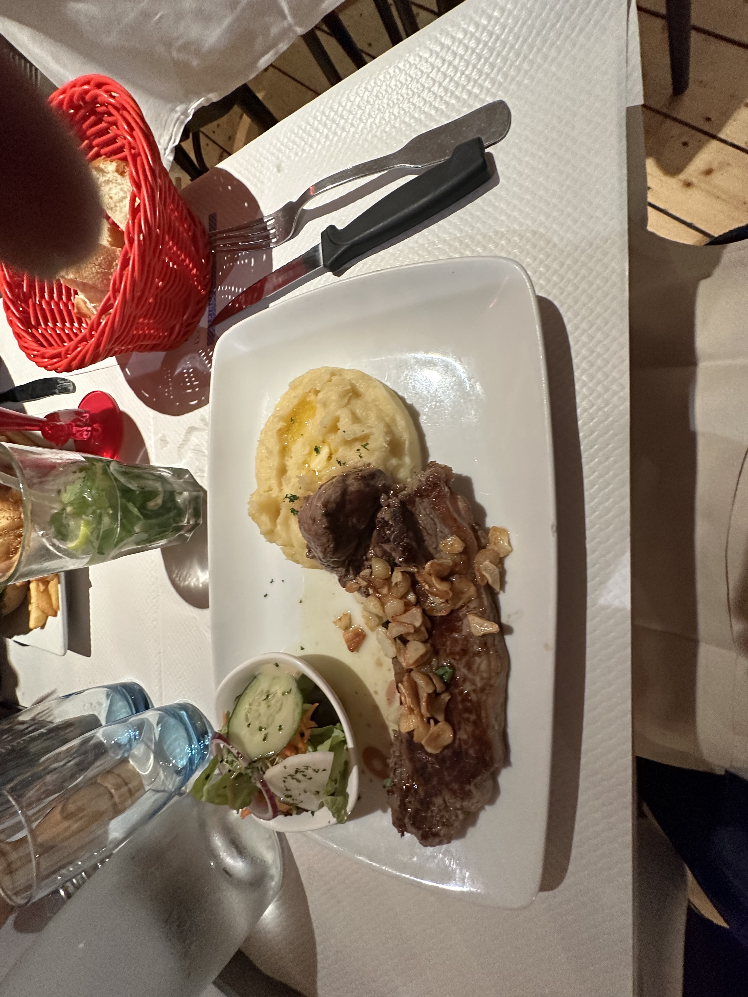 Un serveur au top quel professionnalisme incroyable.!!!merci !!! Il y a tellement longtemps que je n avais plus vu cela . Faux filet à l'ail avec purée maison une tuerie
