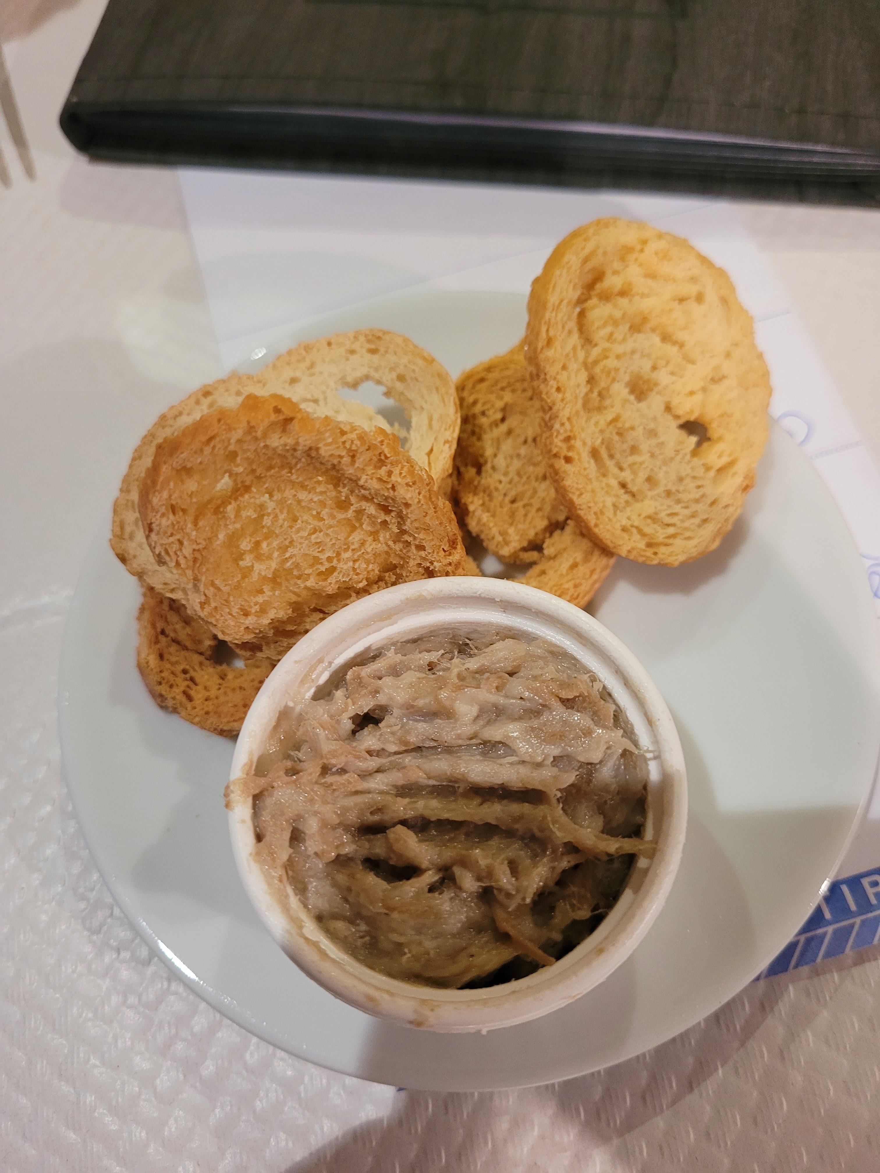 Restaurant sympa, beau cadre, jolie terrasse, personnel sympathique, bonne cuisine. J'y reviendrai volontier. Mise en bouche de rillettes pour moi et mon mari. Mon menu : - Entrée : Tartare aux 2 Saumons et Aneth, huile d'olive (j'ai oublié de prendre la photo. C'était un délice 🤤, Il y avait une émulsion de crème anneth, je pense, sur toast, à manger avec le tartare, un délice de bout en bout 🤤). - Plat : Pavé de Rumsteck, sauce Maroilles. - Dessert : La Tarte aux Fraises et Croustillant Spéculoos (Un déliceeee ! 🤤). - Un café au lait. --- --- --- Menu de mon mari : - Pas d'entrée. - Plat : Le Welsh Royal, Œuf au plat et Jambon, frites (Il a adoré !). - Dessert : Dame Blanche au vrai Chocolat et chantilly. Je recommande à 100%. Petit bémol pour un des serveurs qui passait trop régulièrement proche de notre table pour voir si on avait fini ou pas, c'était un peu oppressant, je me suis senti obligé de finir vite mes plats.