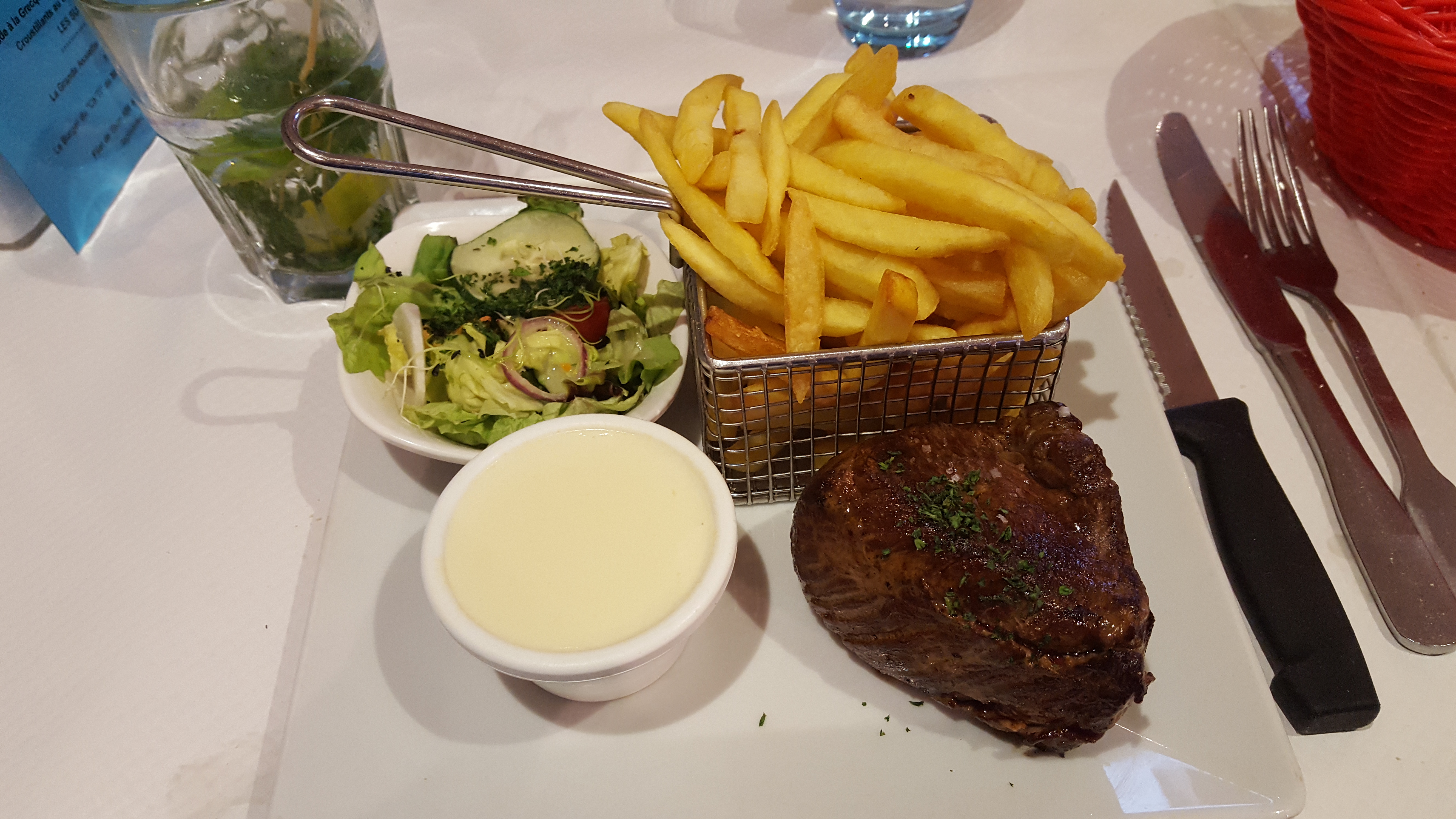 Service rapide, serveur sympa et, cadre agréable ! Viande très bonne mais dommage qu'il n'y ait pas un peu plus de salade en accompagnement... le petit ramequin fait léger...