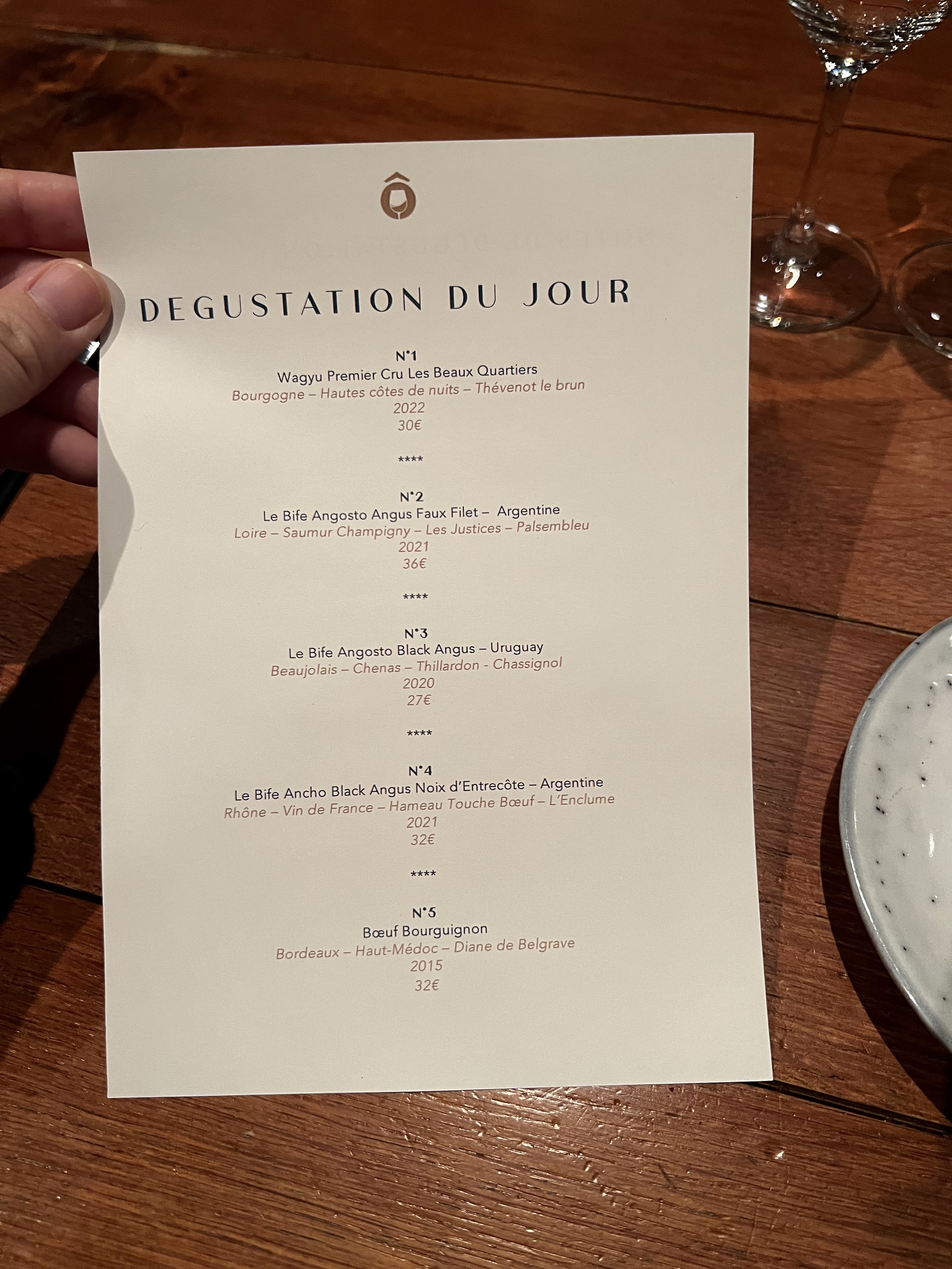 Nous avons testé chez eux, la dégustation vin et bœuf et nous avons adoré ! La salle de dégustation est magnifique, décor idéal pour ce type d'expérience. Cette dégustation avec Mélanie la sommelière était très intéressante, alliant théorie et pratique. Un cadre et une ambiance sympathique, du bon vin et de la bonne viande, que demander de plus ! En tout cas les accords, ( surtout le premier accord wagyu et bourgogne) étaient excellents ! C'est une jolie découverte avec des propositions très variées. N'hésitez pas que vous soyez novice ou confirmé